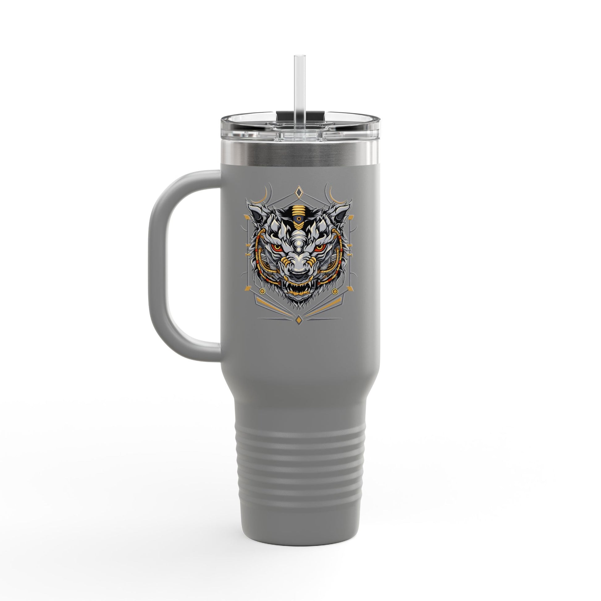 A powerful tiger emblem tumbler designed for all-day temperature control and bold style