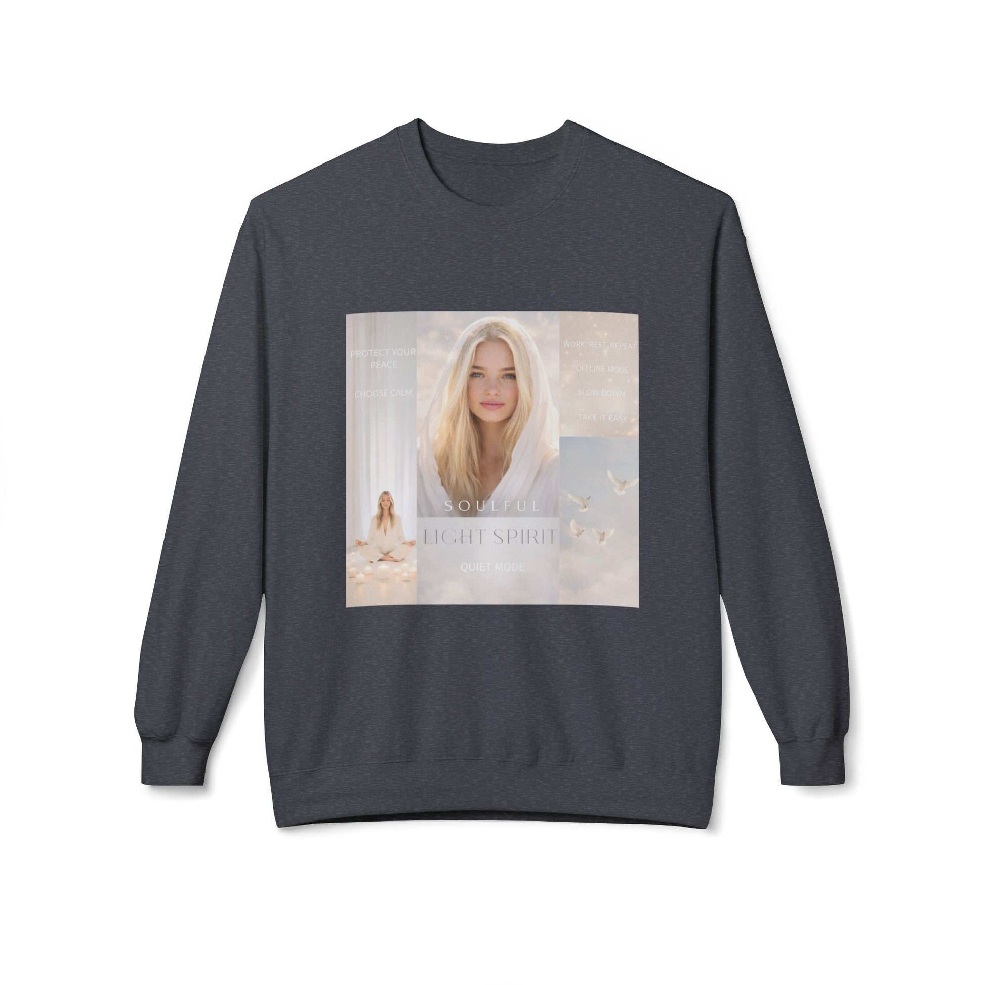 This sweater showcases the same peaceful portrait artwork, printed exactly as shown.