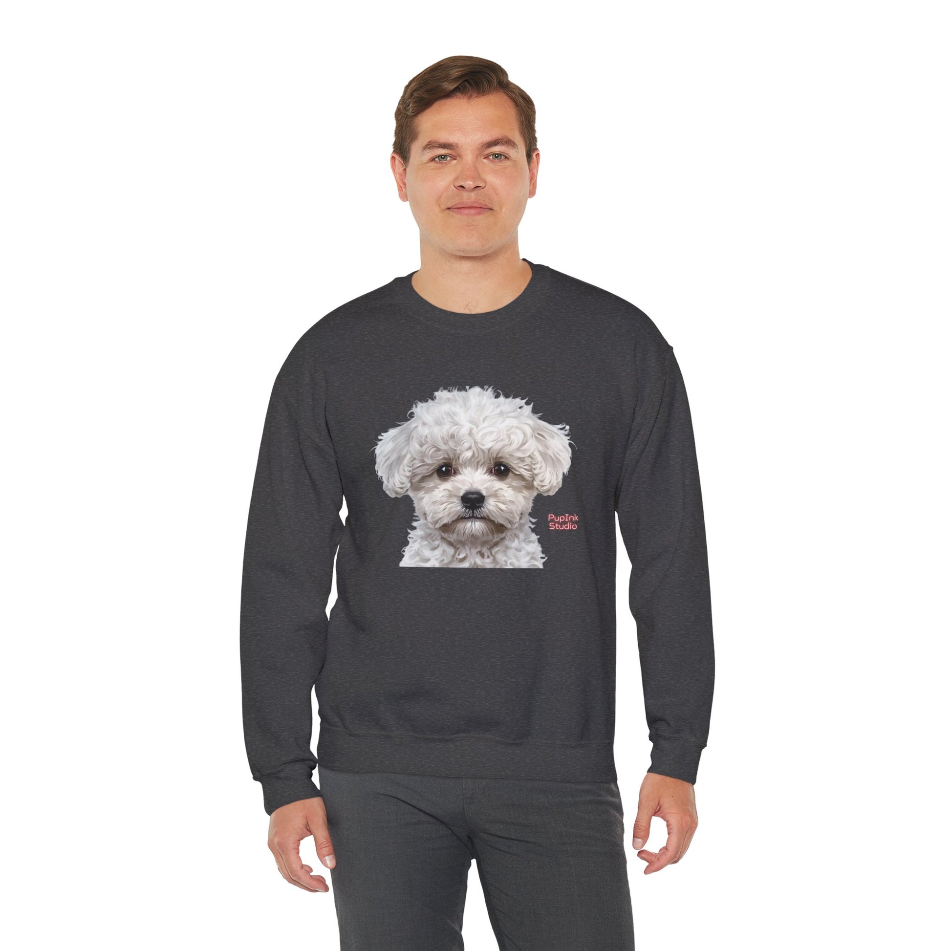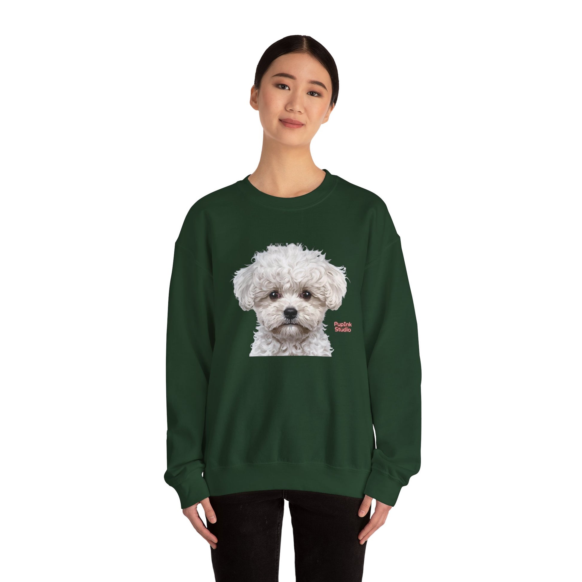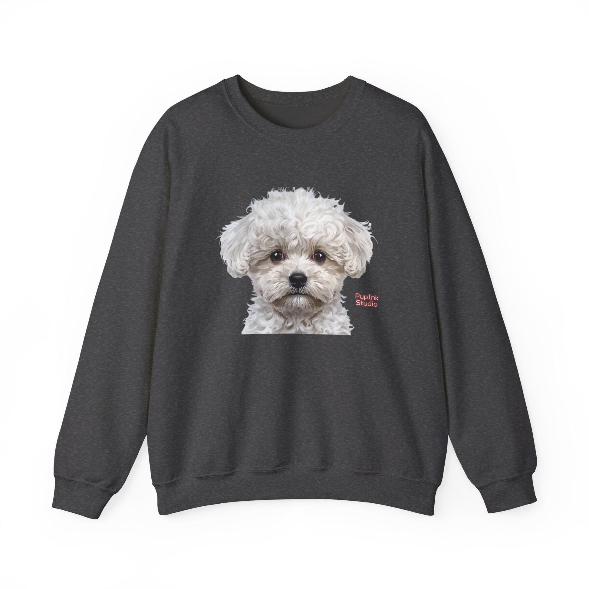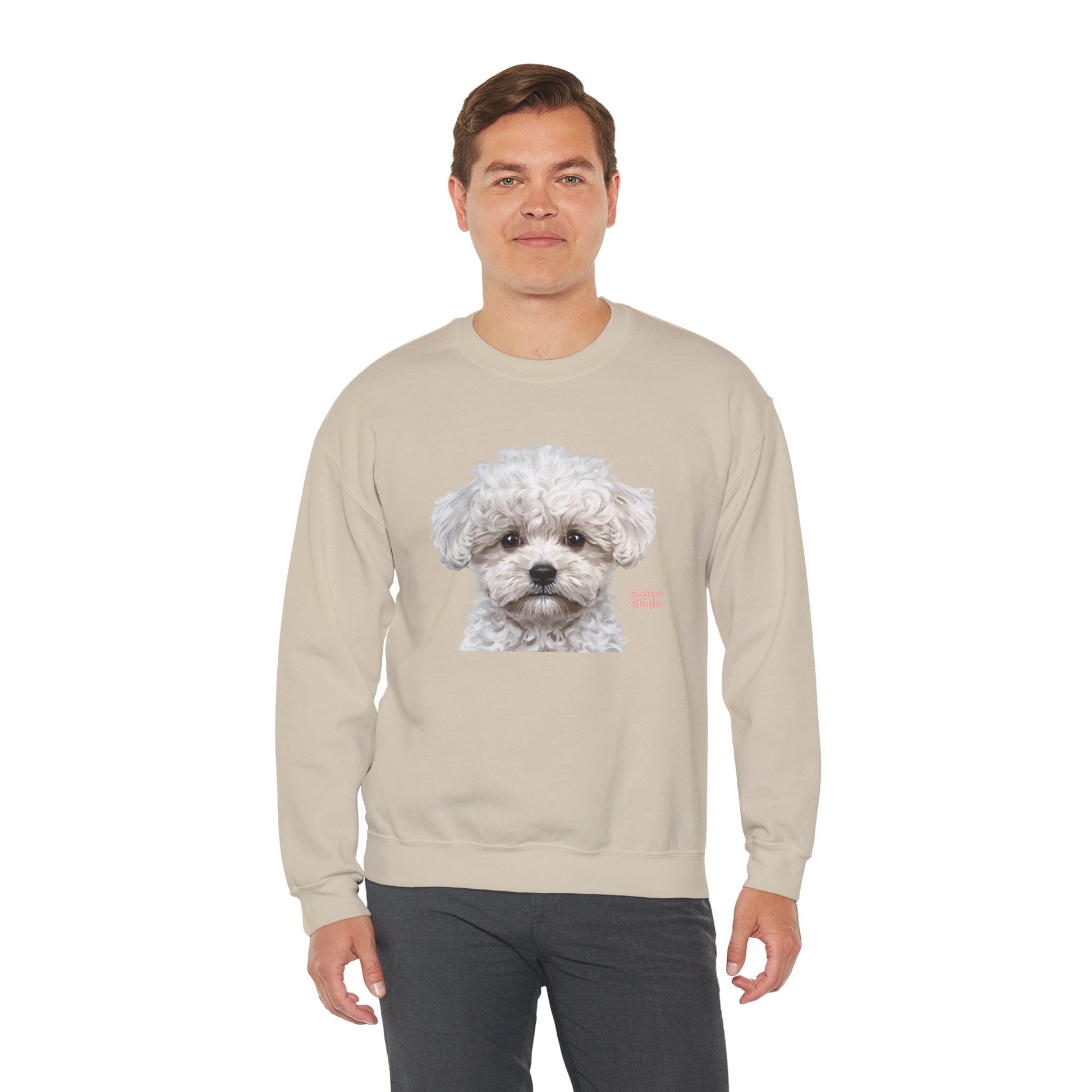 This classic sweater features a detailed white poodle portrait printed on the front, capturing a gentle and expressive look that feels warm and approachable.