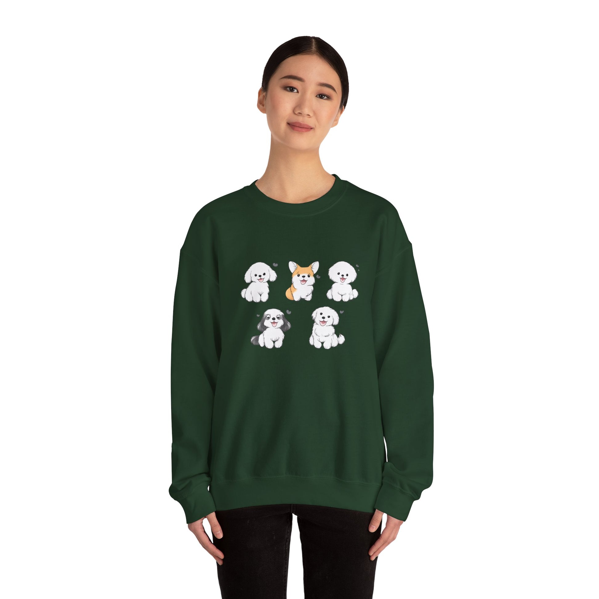 This classic sweater features an adorable puppy illustration paired with the playful “Ruff!” message and subtle heart accents, bringing lighthearted energy to your everyday style.
