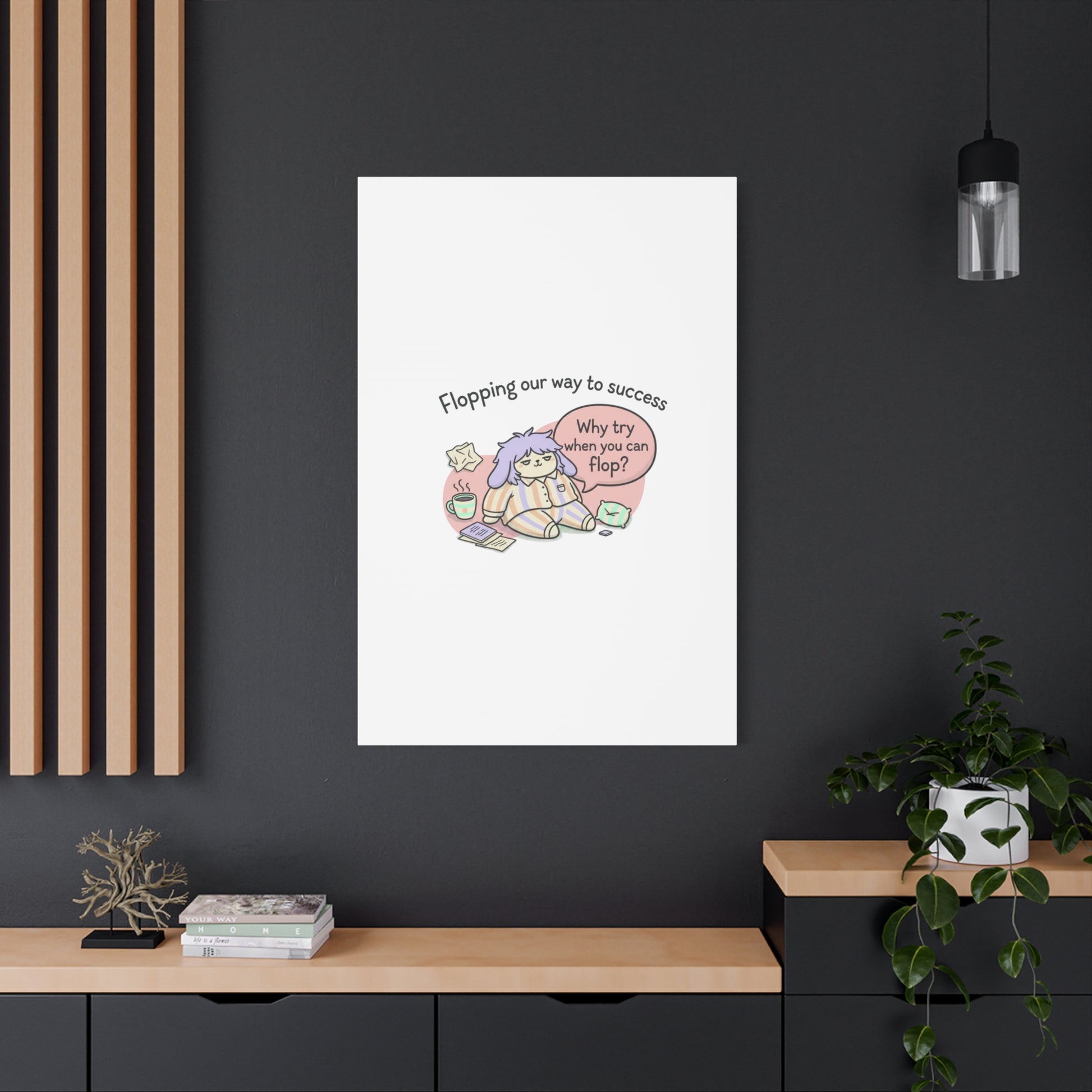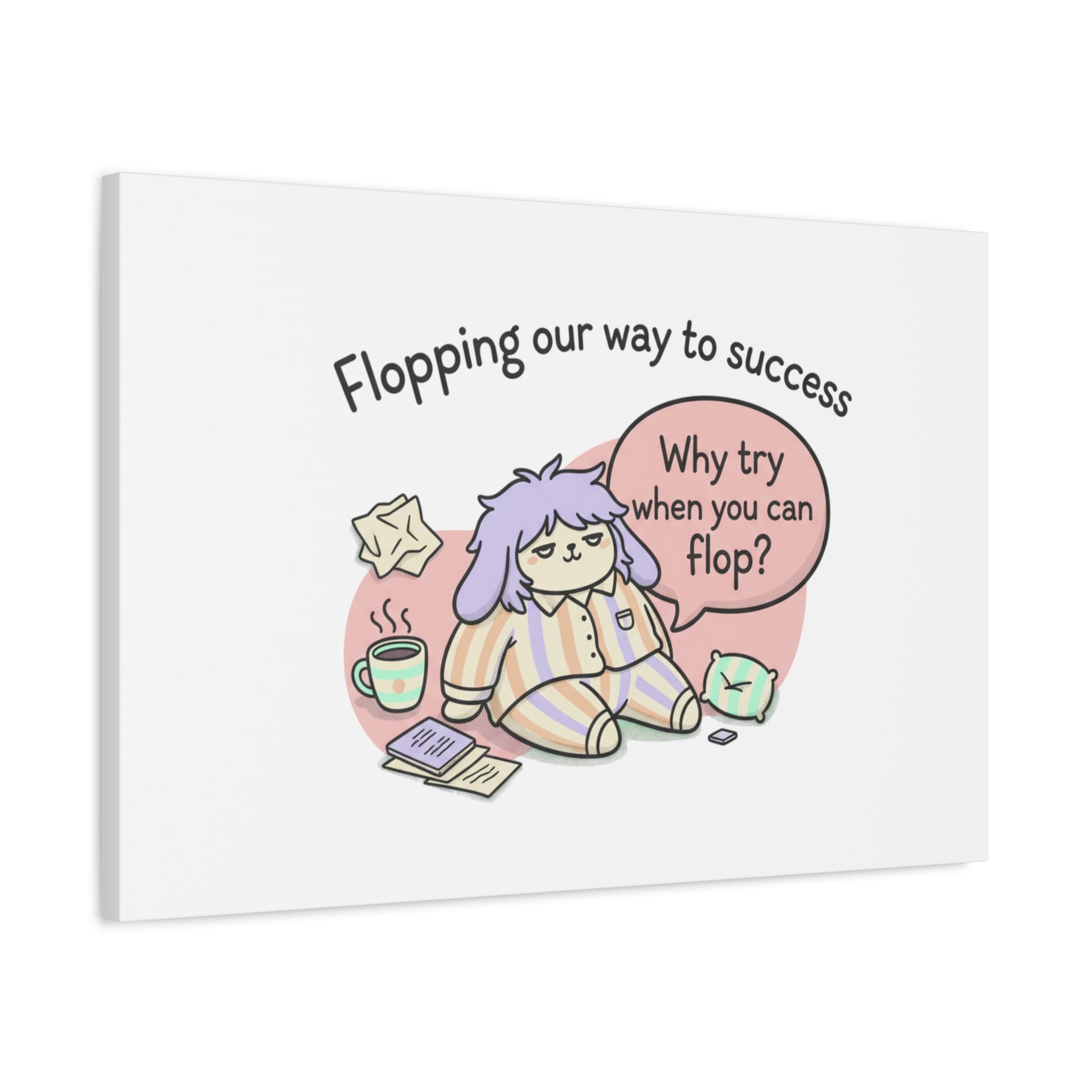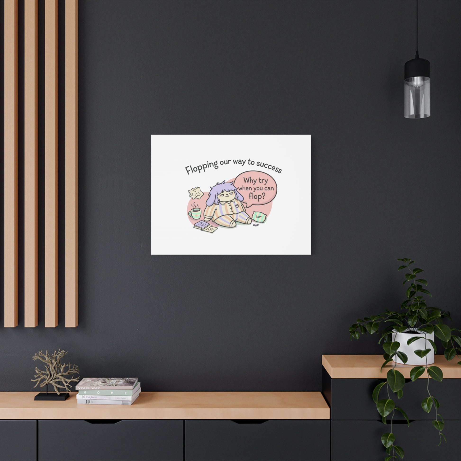 Flopping Our Way to Success Canvas | flop era, burnout humor