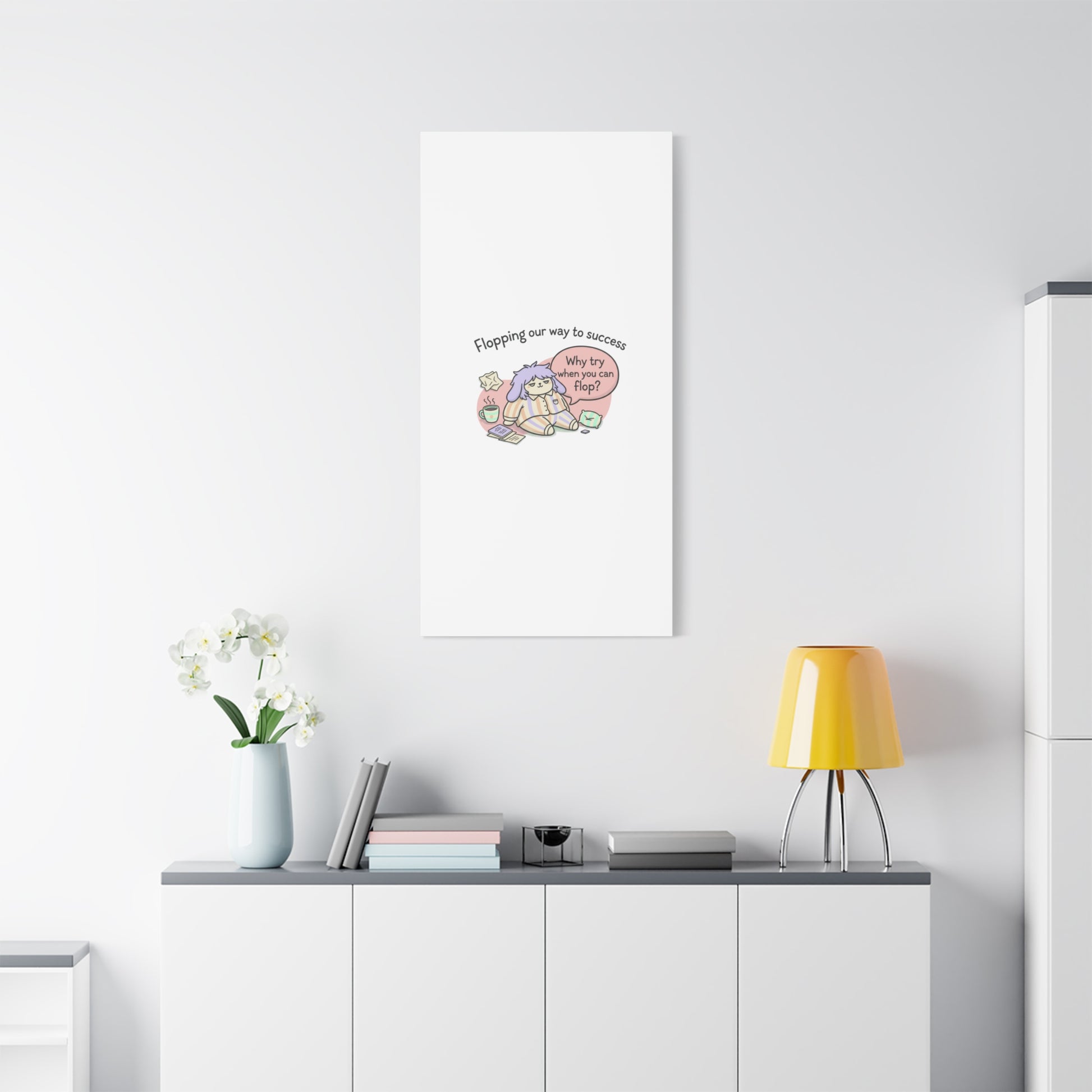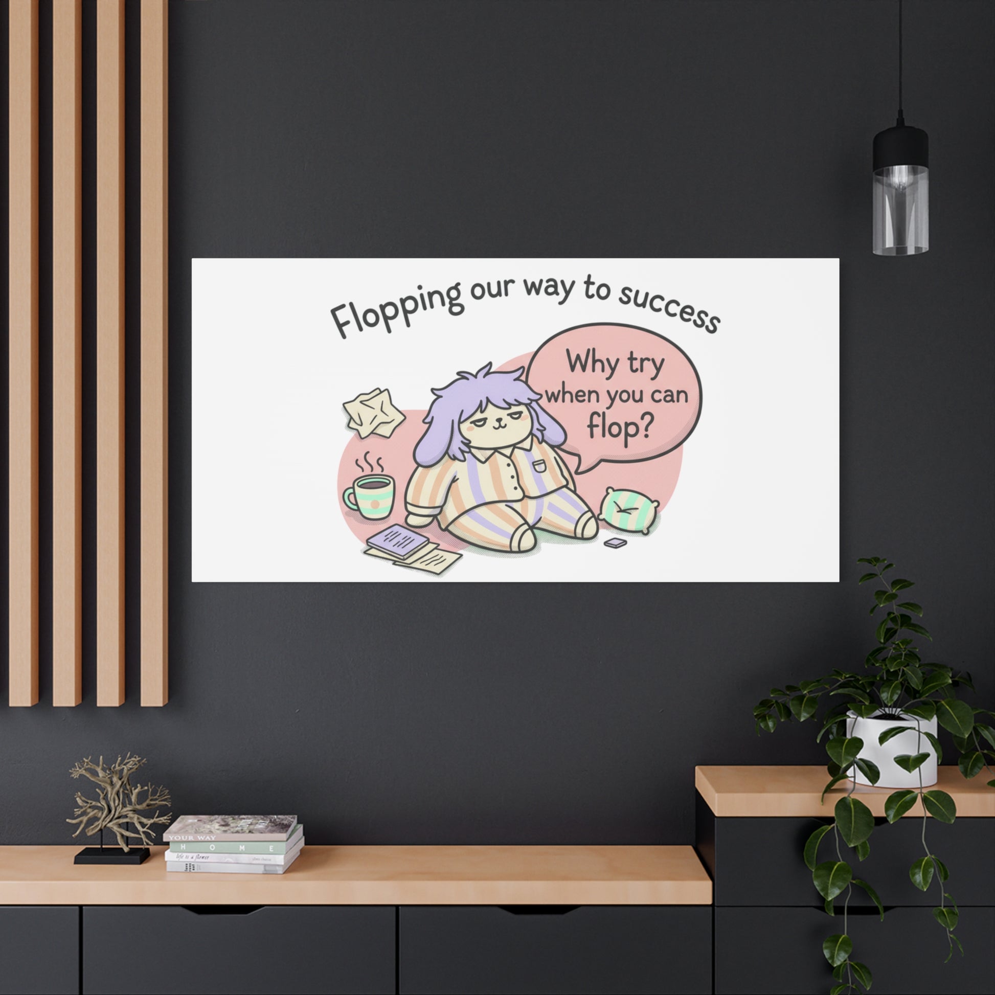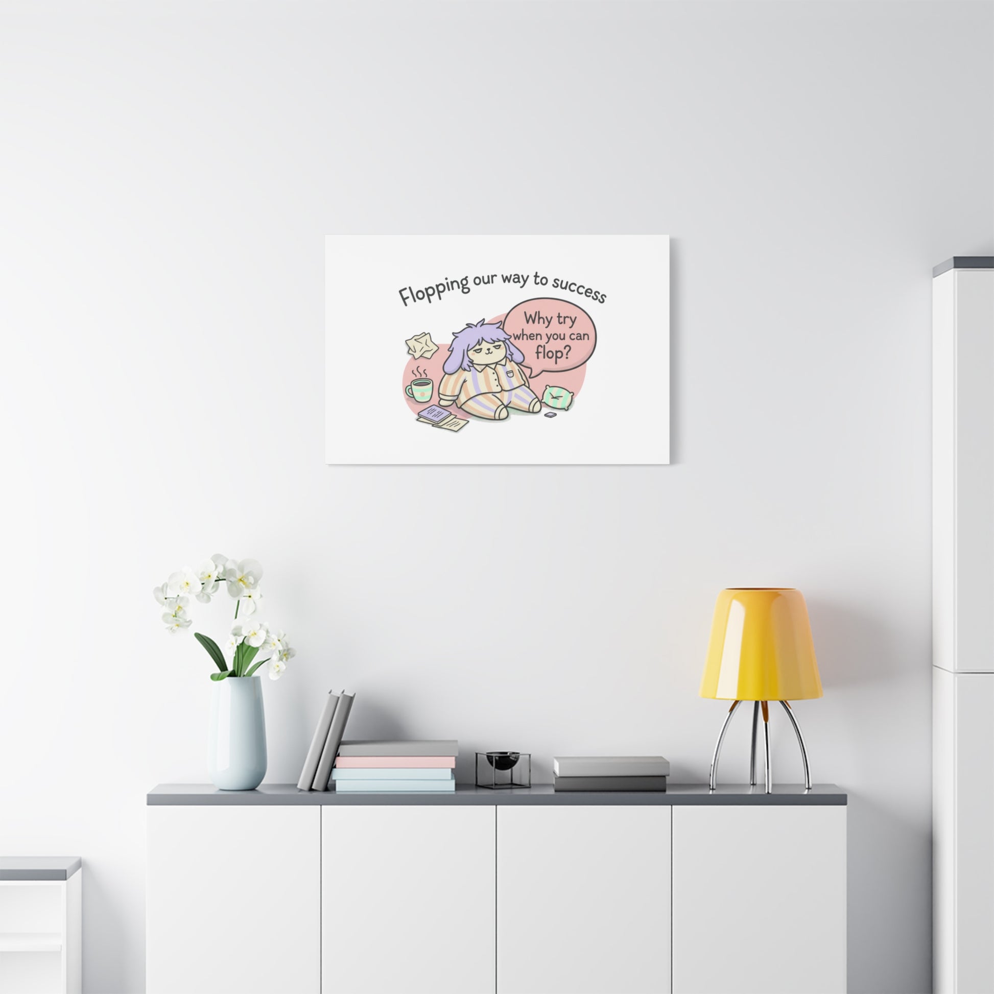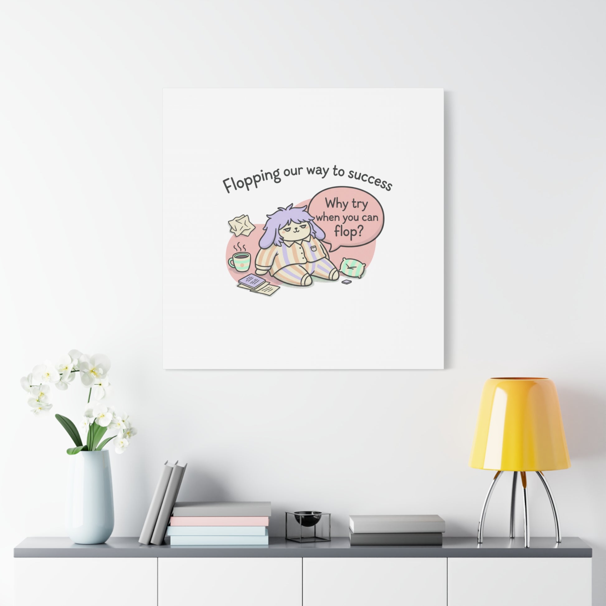 Flopping Our Way to Success Canvas | flop era, burnout humor