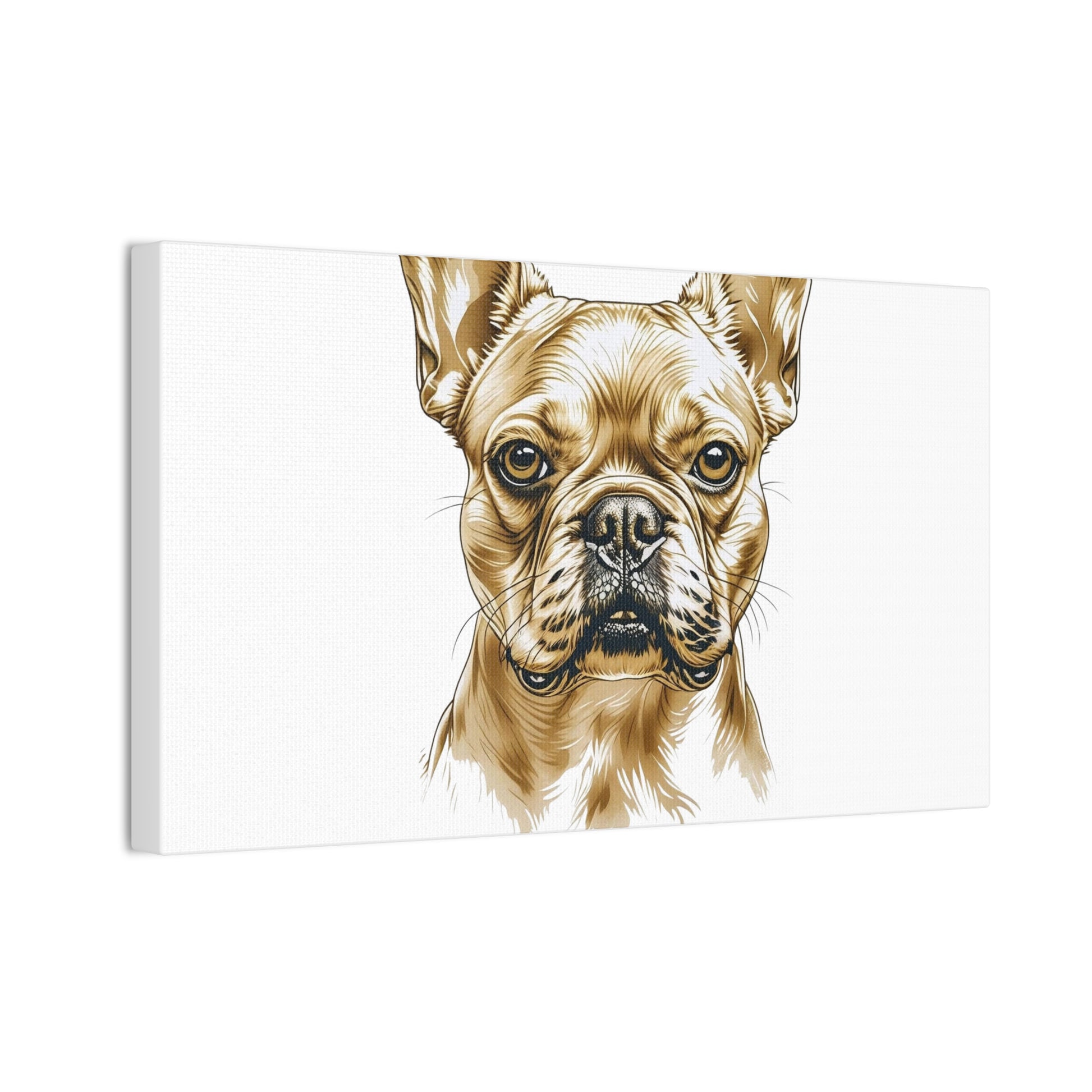 This canvas wall art features a detailed French Bulldog portrait with expressive eyes and refined line work