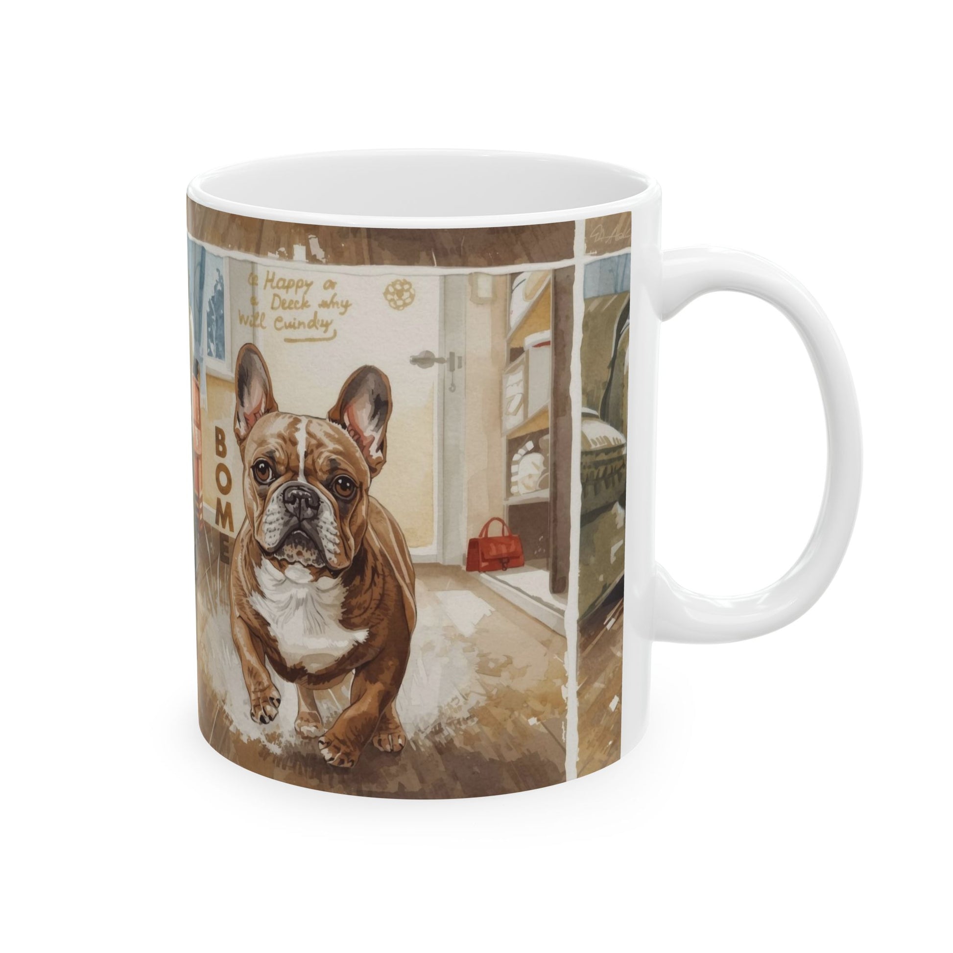 French Bulldog Home Scene Ceramic Mug — Cute Dog Illustration Coffee Cup (11oz/15oz)