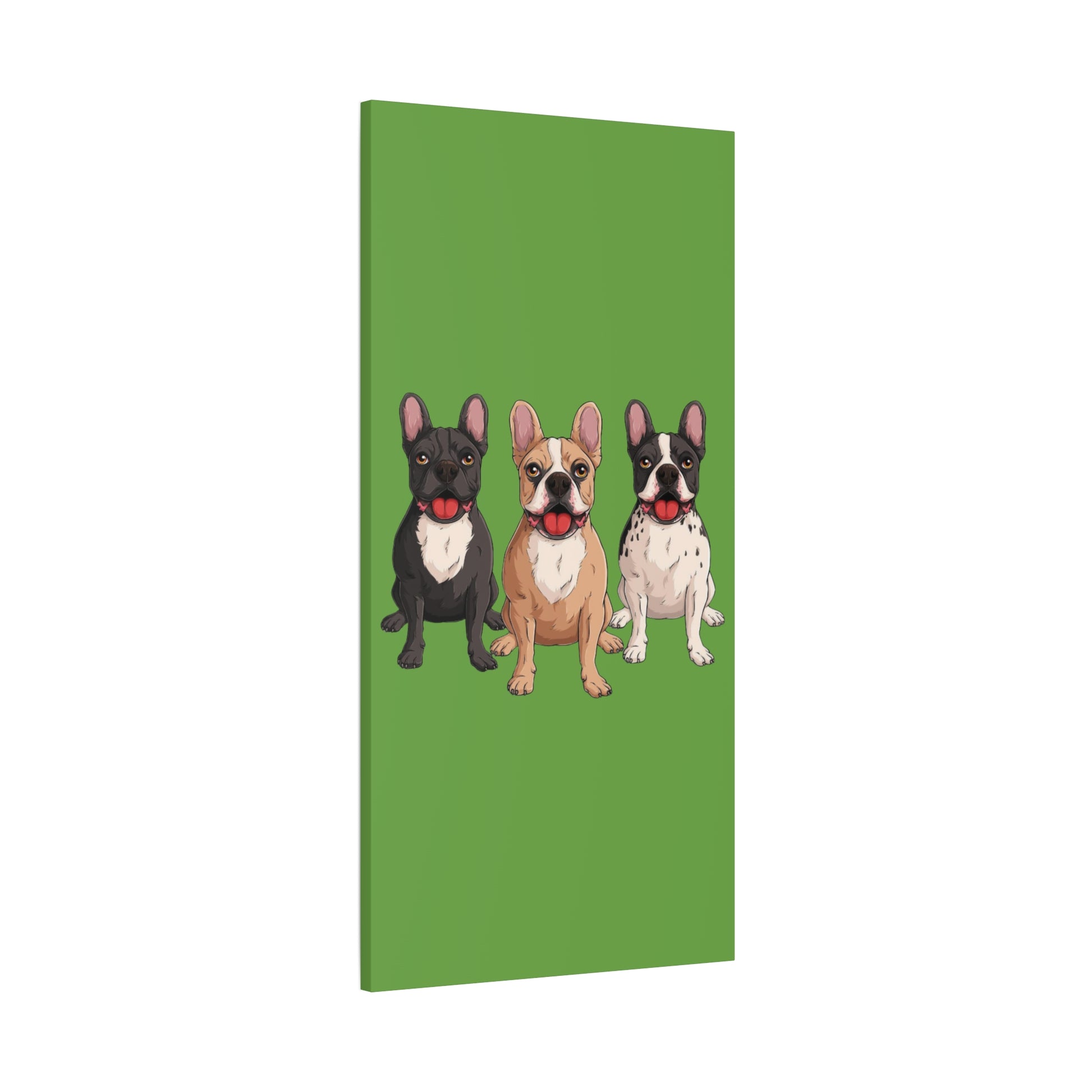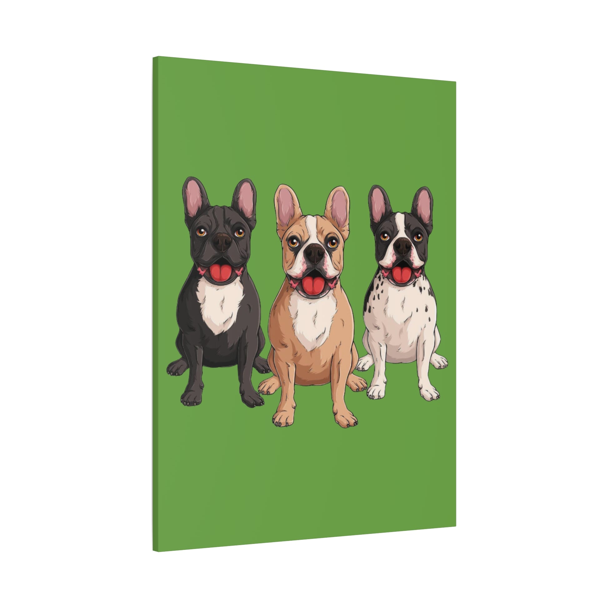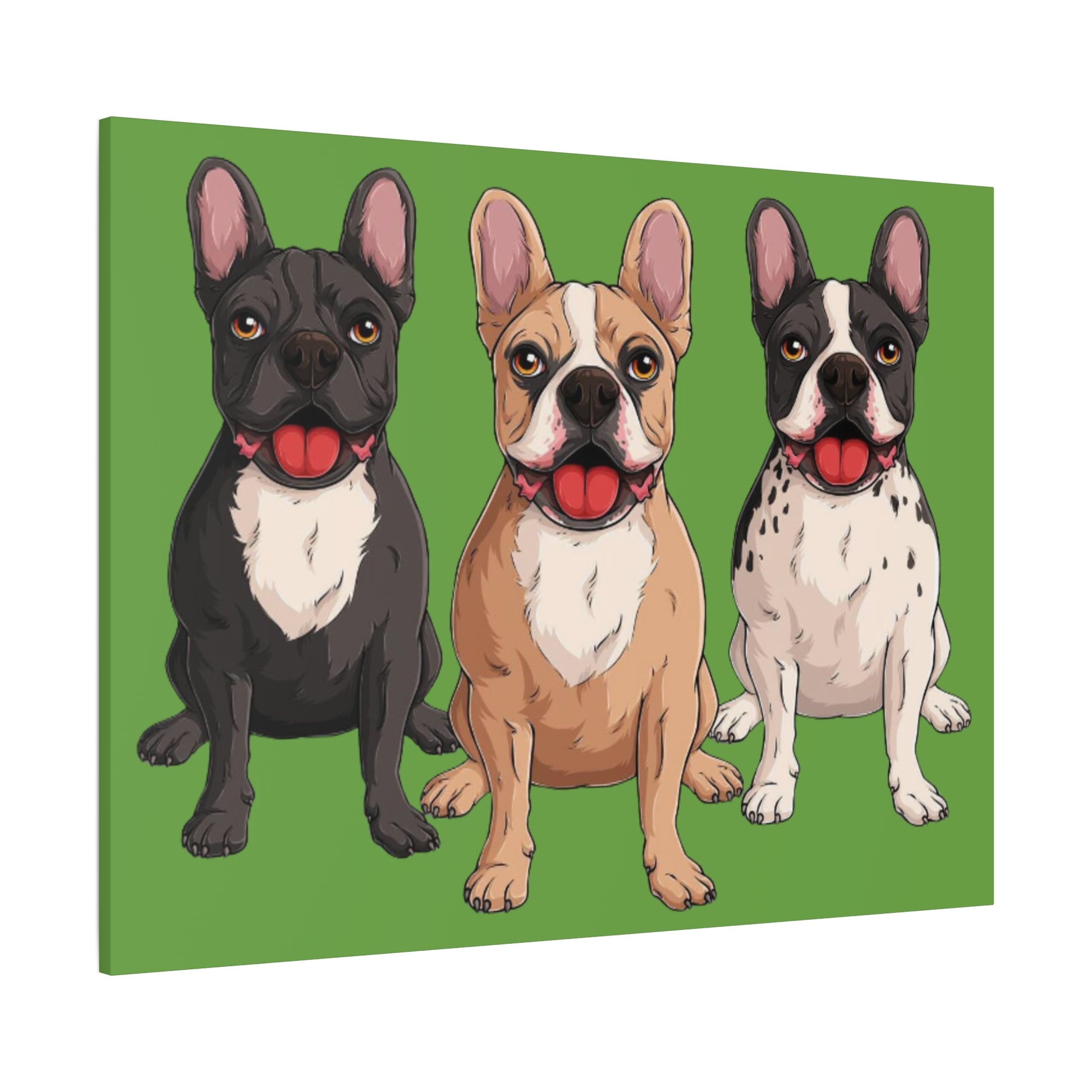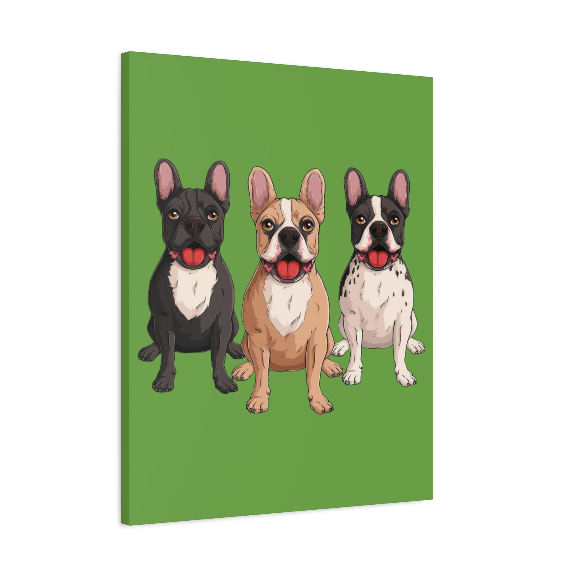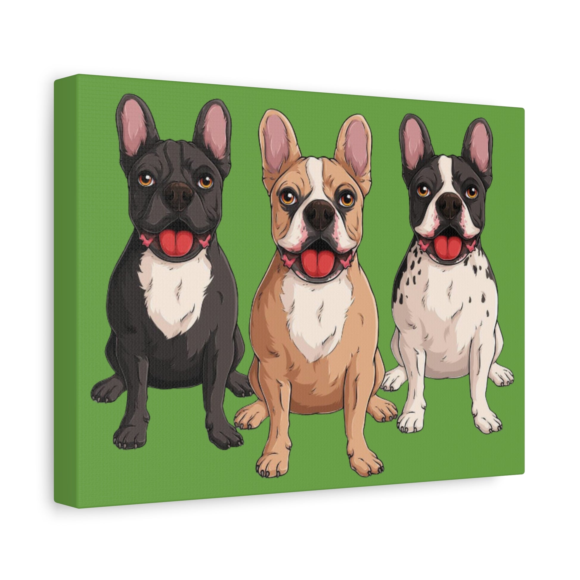 A bold canvas print featuring a charming trio of French bulldogs.
