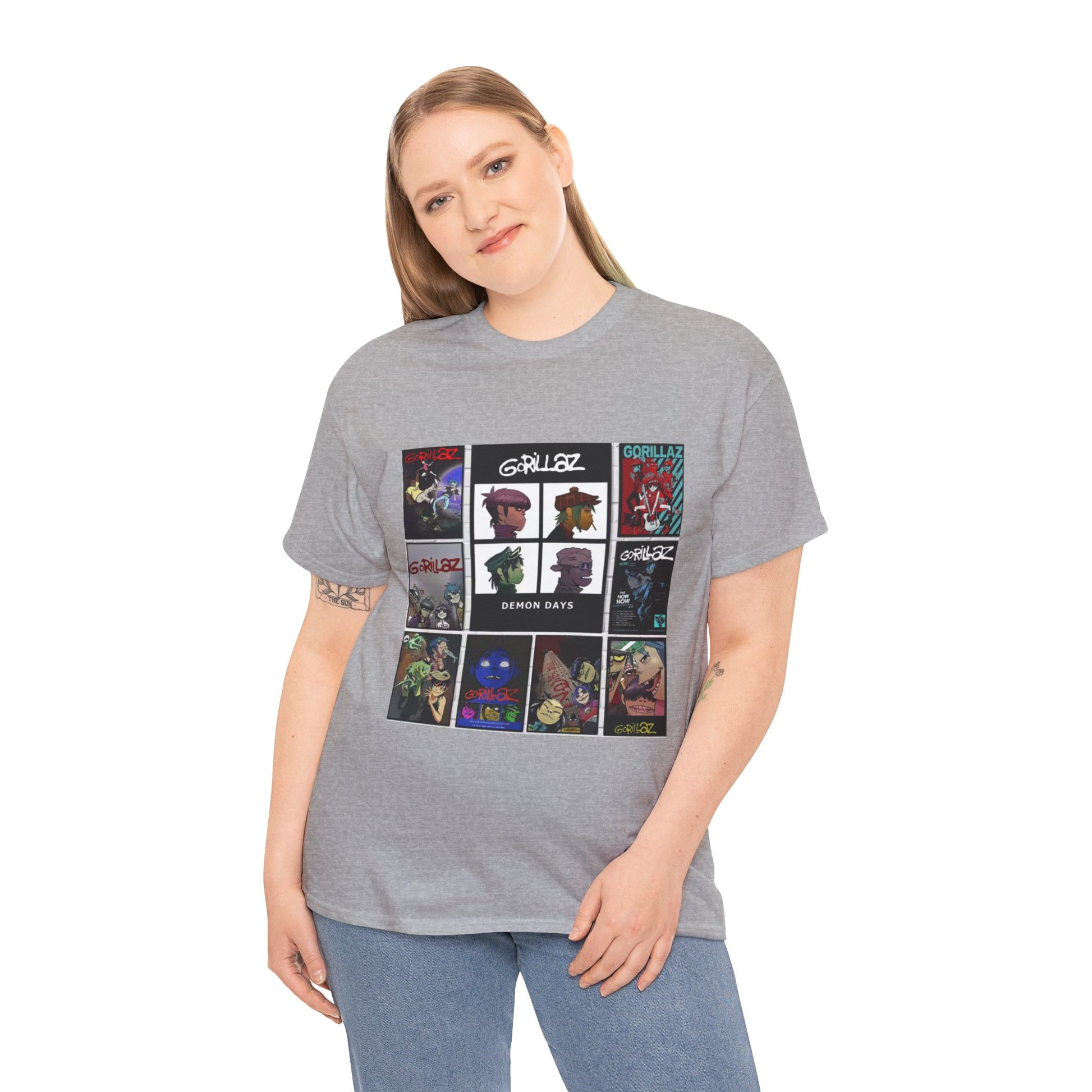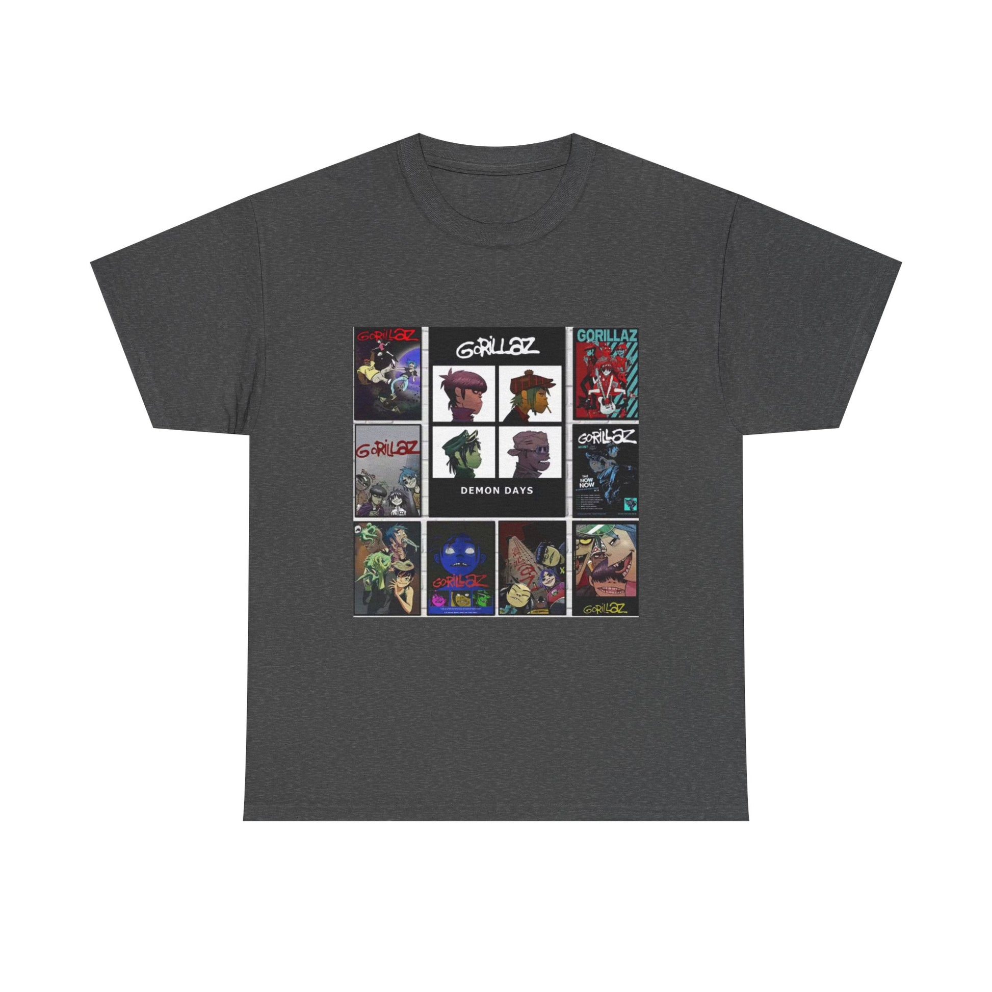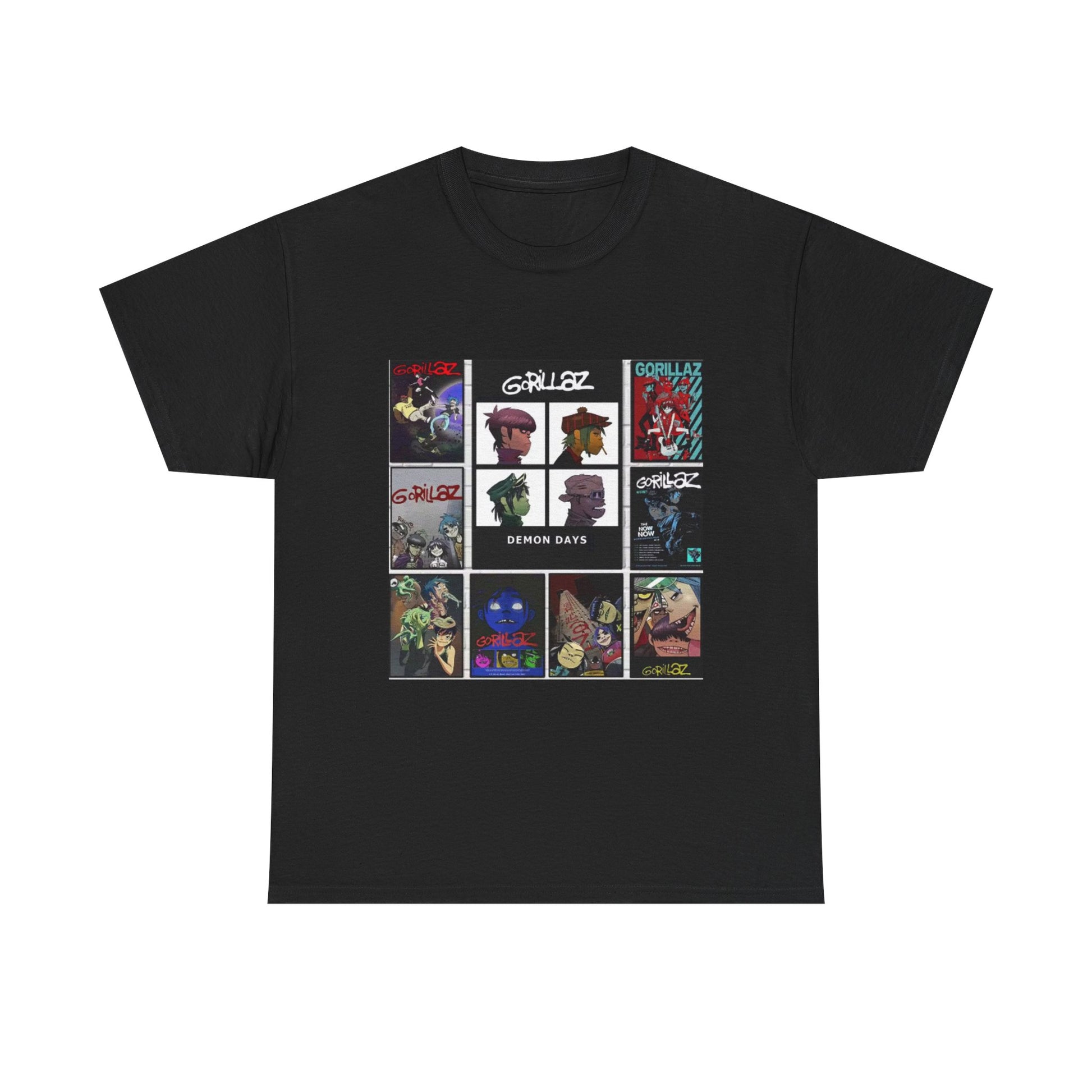 This graphic T-shirt features an animated band collage that blends music culture with modern street style.