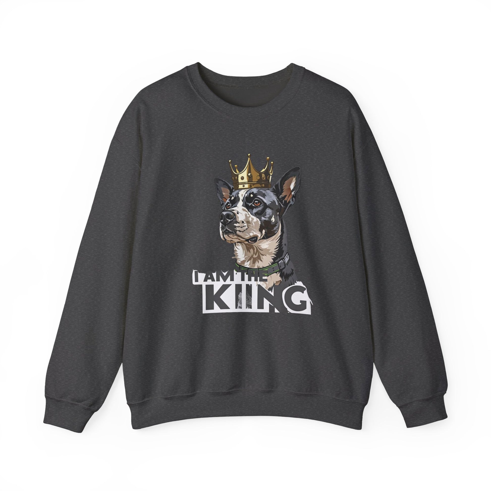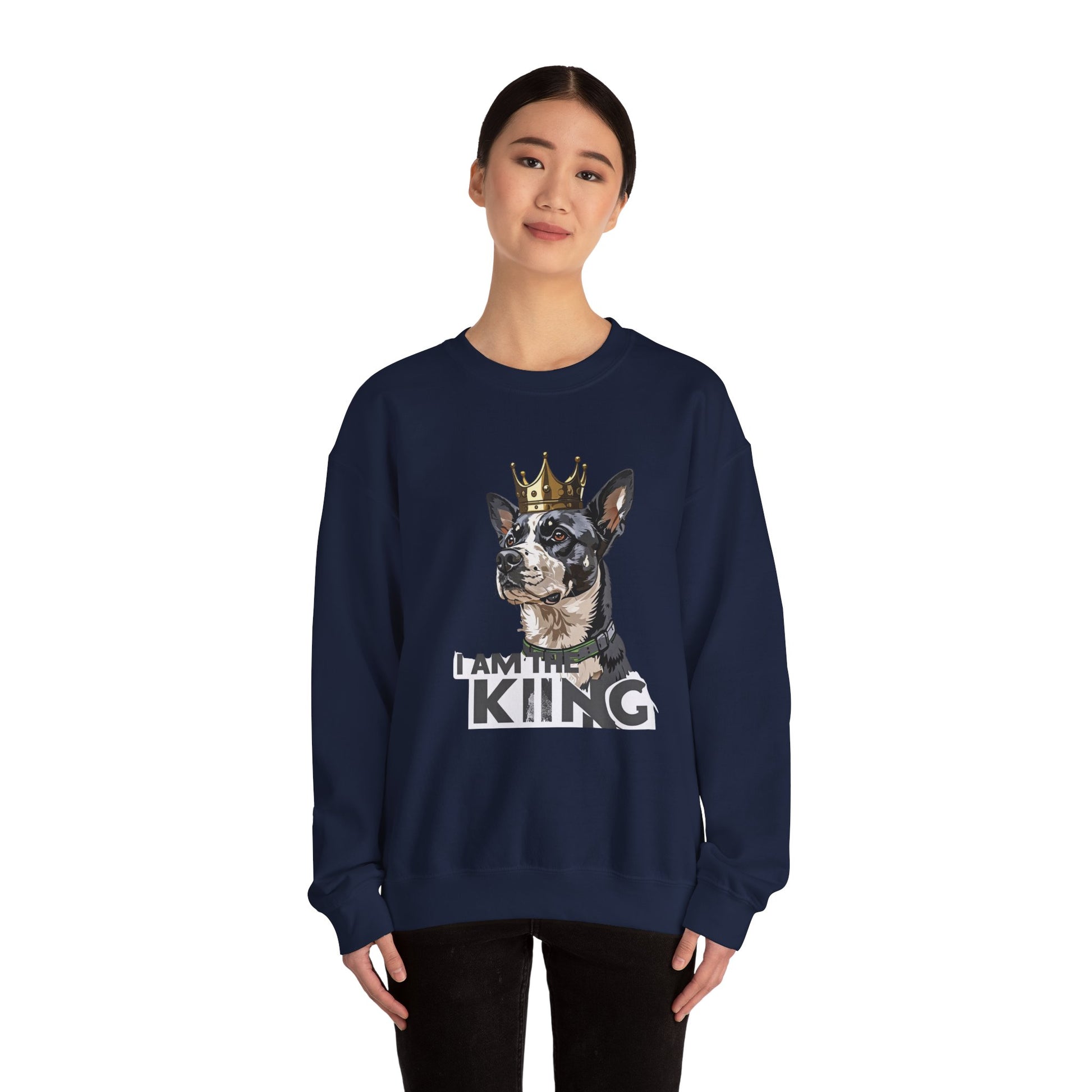 This sweatshirt features a confident crowned dog illustration that instantly commands attention.