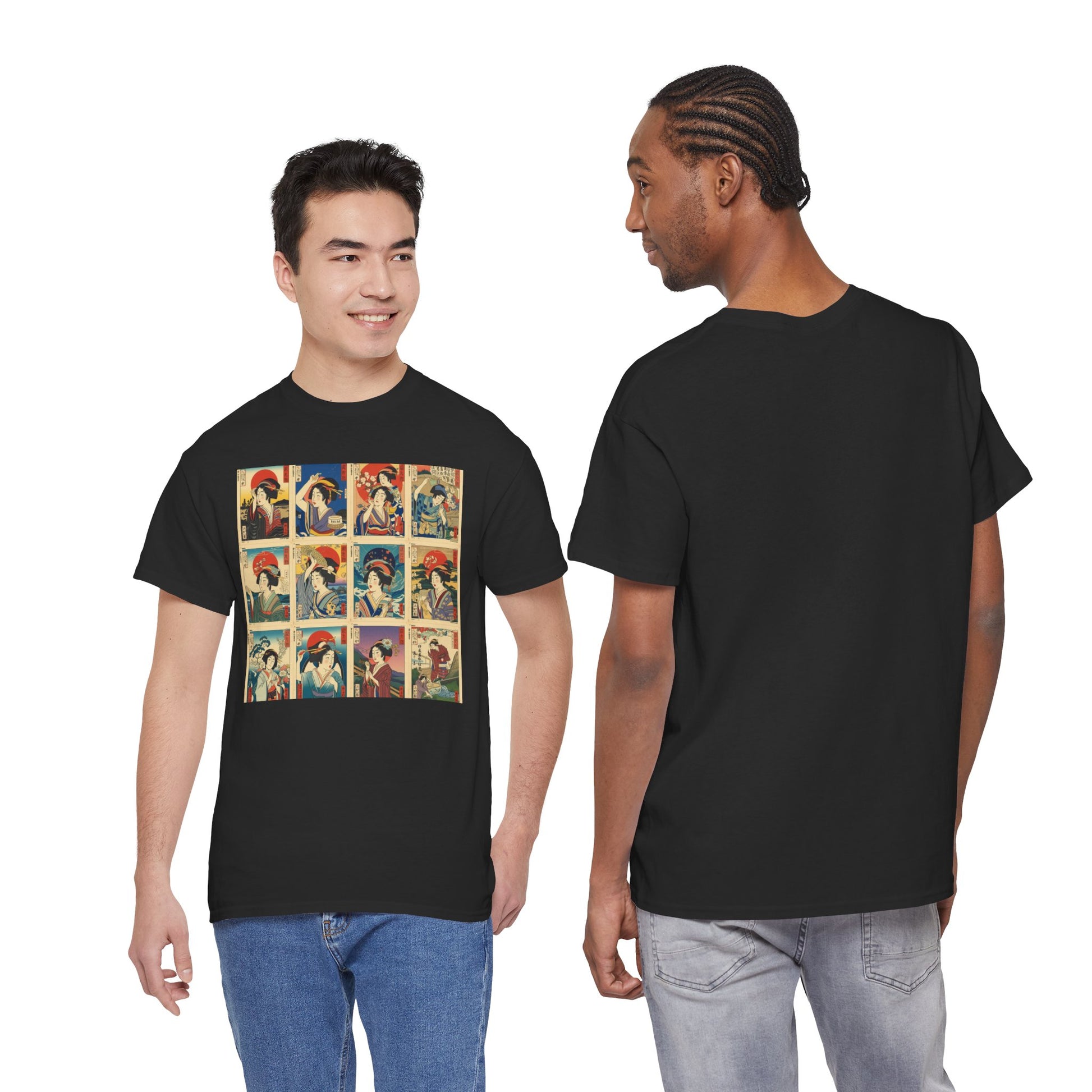 This T-shirt features a striking retro ukiyo-inspired pop art composition, blending classic Japanese aesthetics with bold, modern colorwork.
