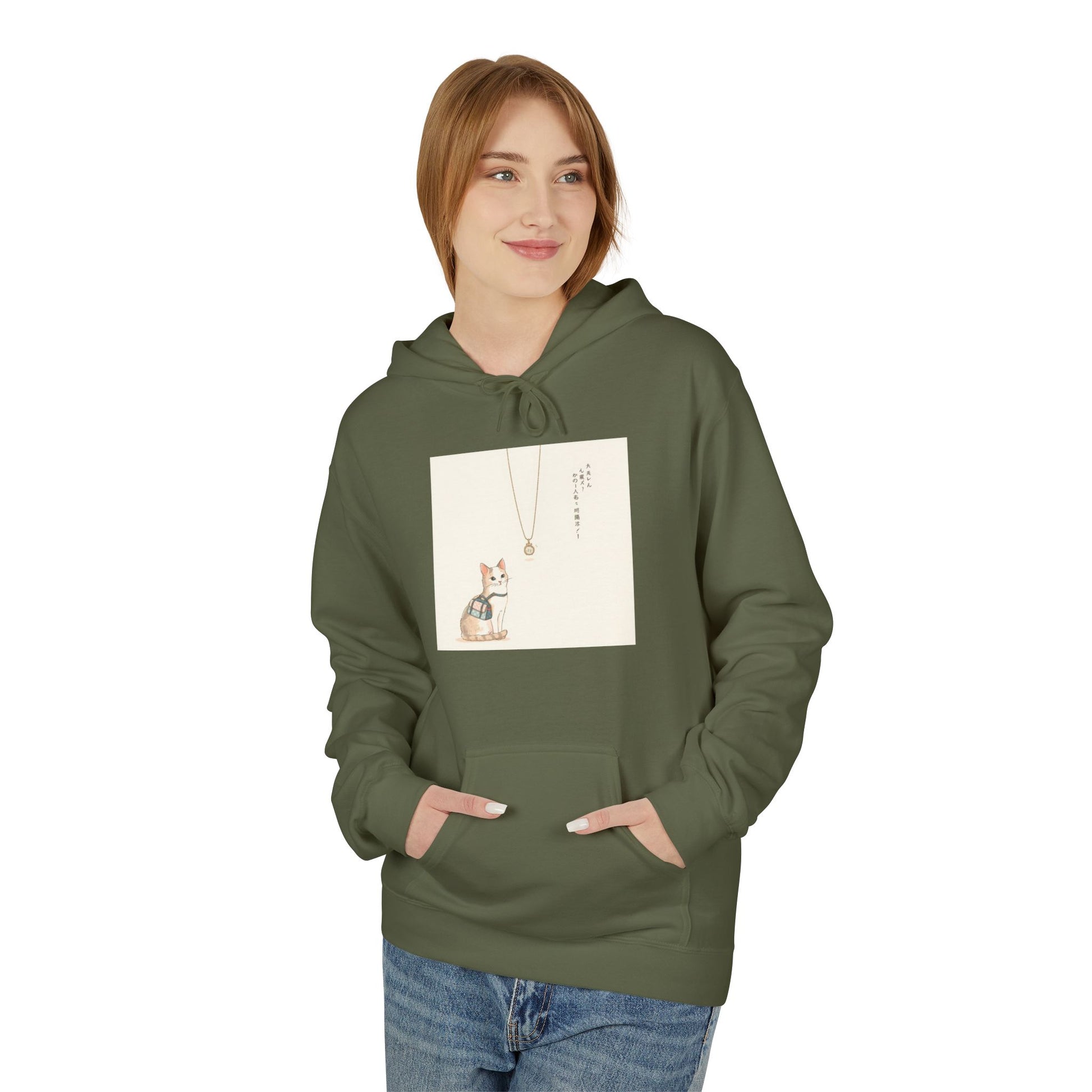 This hoodie features a peaceful lucky cat illustration paired with a four-leaf clover, symbolizing comfort, protection, and quiet confidence.