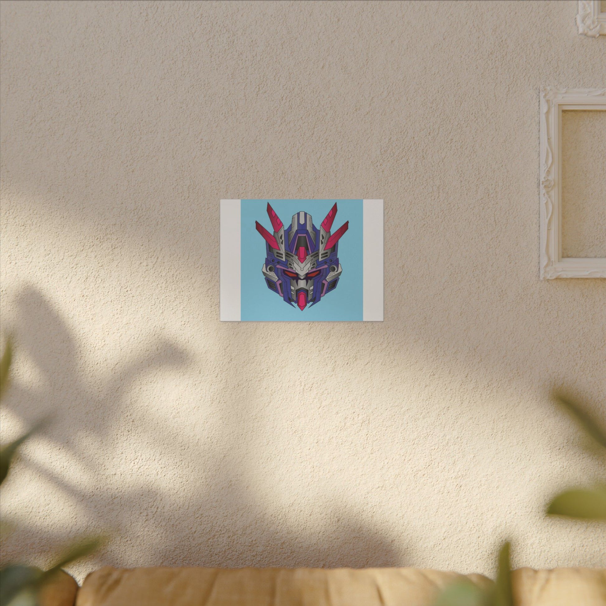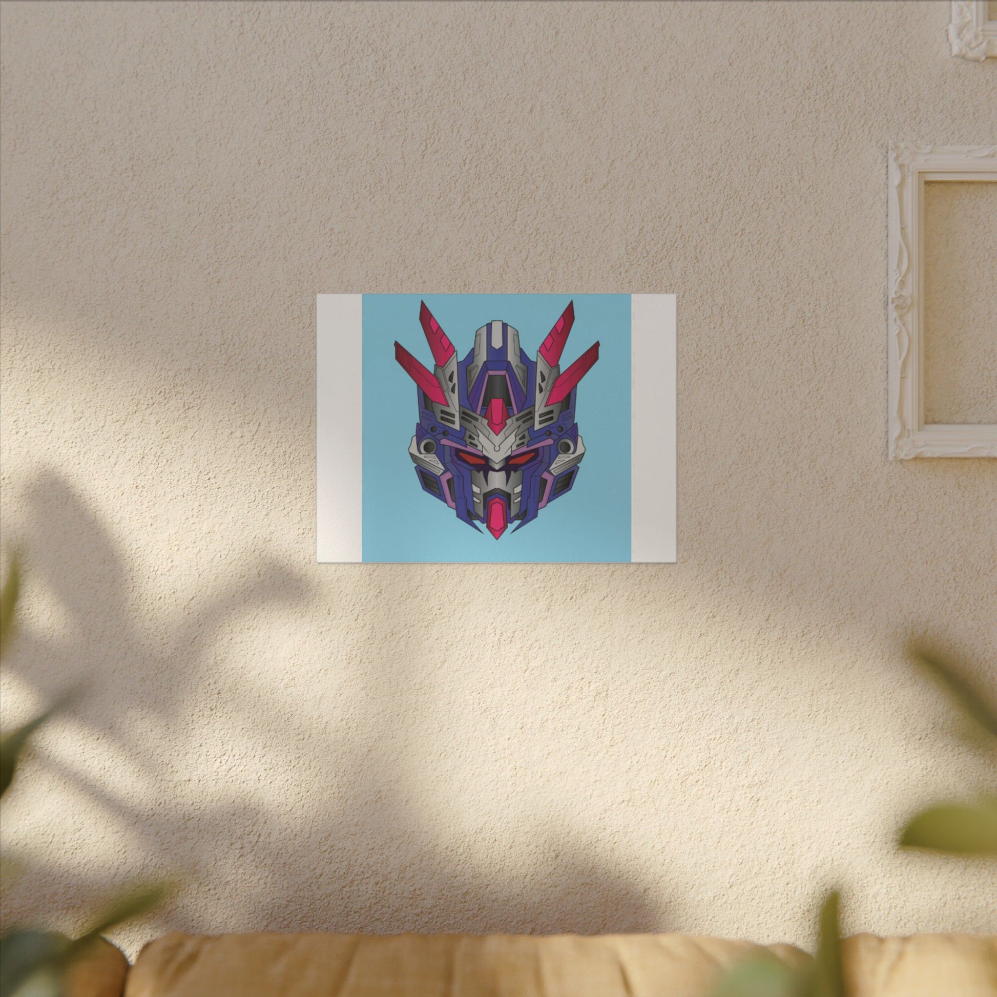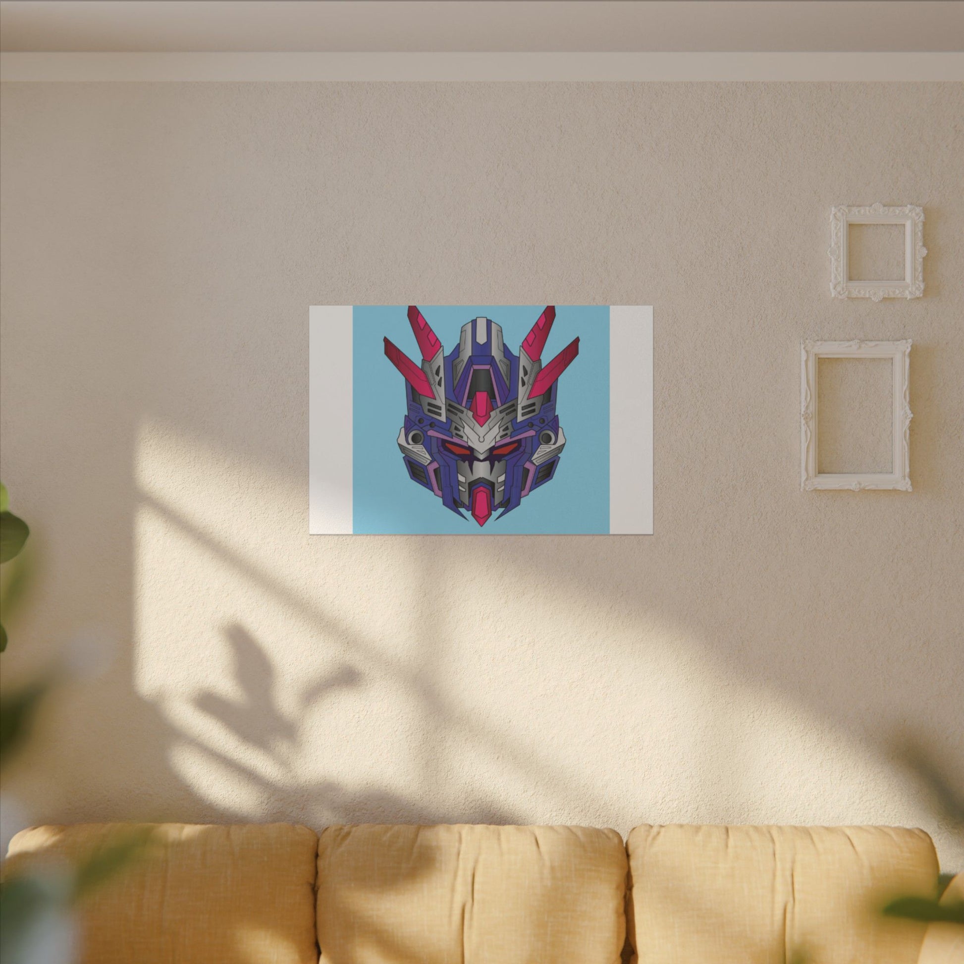A vibrant matte canvas print that brings bold, sci‑fi energy to any wall. The stretched 0.75" gallery wrap sits lightly above the frame, letting the detailed mech helmet design read like a poster-sized illustration. Colors stay bright and accurate thanks to a special coating and UL-certified Greenguard Gold latex inks, while the sturdy radial pine frame and cotton/poly canvas give the piece a tactile, long-lasting presence. Small rubber pads on the back keep the canvas steady on the wall, and the narrow 0.75" profile works well solo or grouped with other prints to build an eye-catching display.