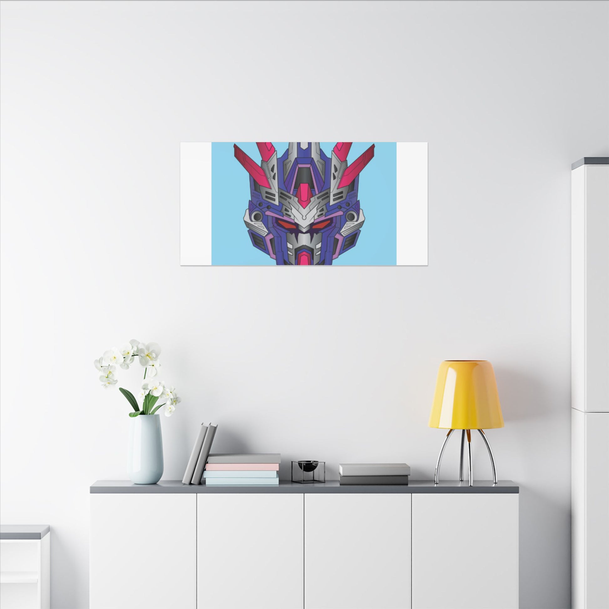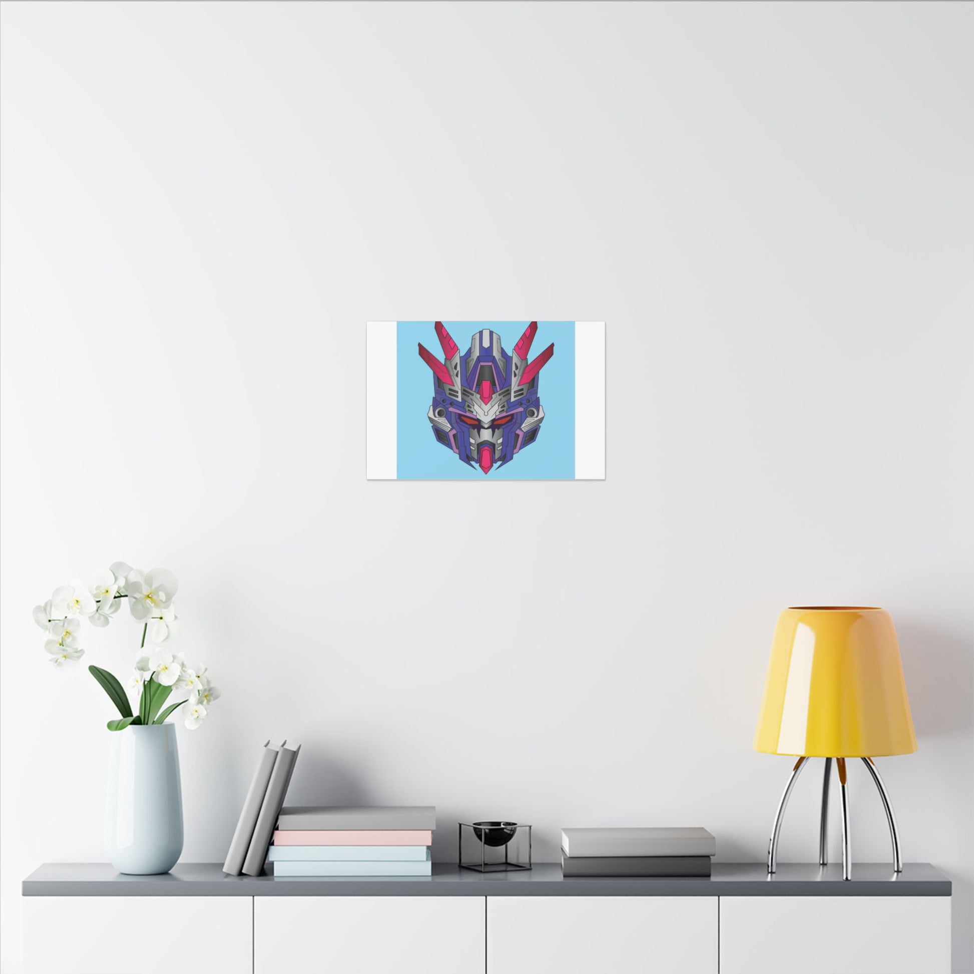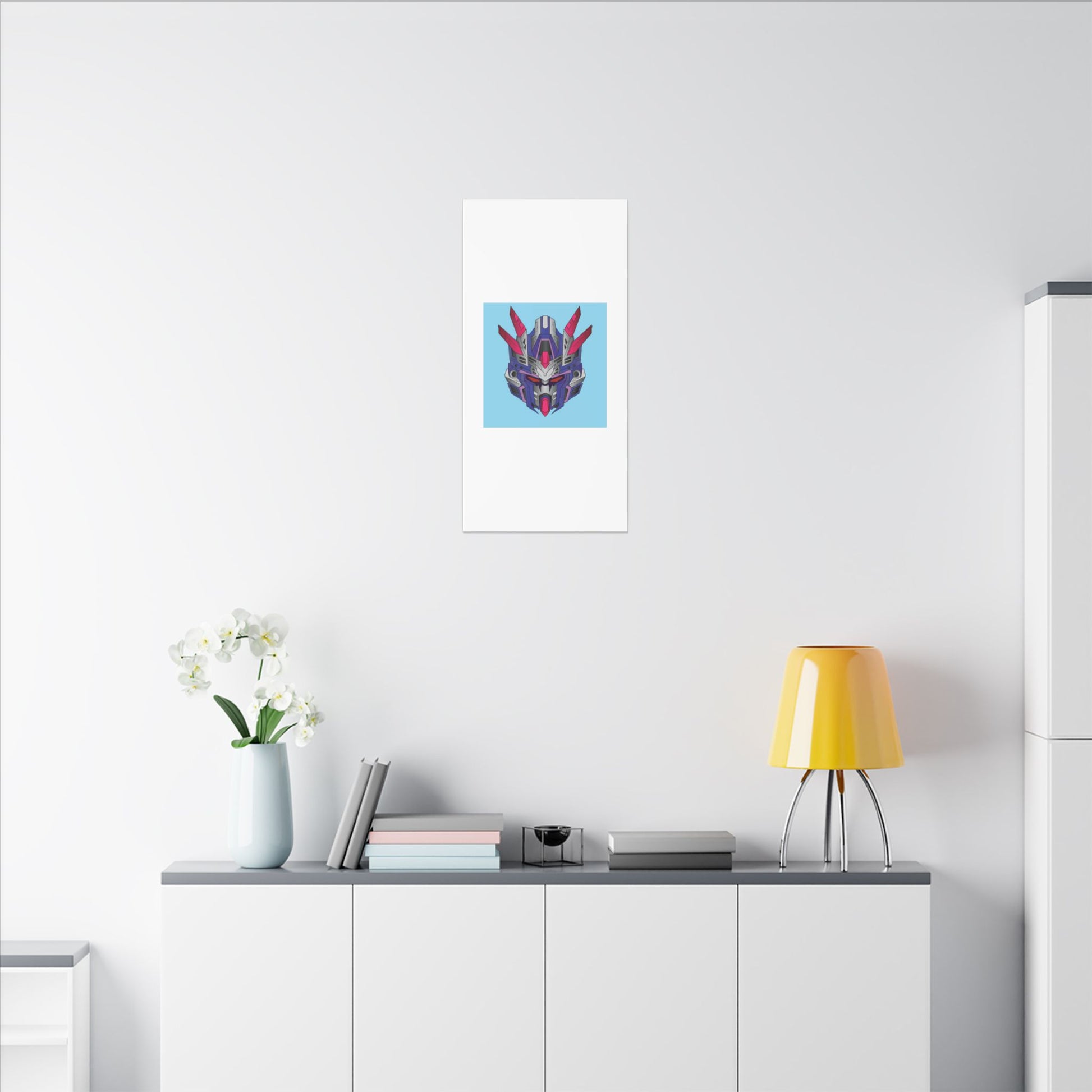 A vibrant matte canvas print that brings bold, sci‑fi energy to any wall. The stretched 0.75" gallery wrap sits lightly above the frame, letting the detailed mech helmet design read like a poster-sized illustration. Colors stay bright and accurate thanks to a special coating and UL-certified Greenguard Gold latex inks, while the sturdy radial pine frame and cotton/poly canvas give the piece a tactile, long-lasting presence. Small rubber pads on the back keep the canvas steady on the wall, and the narrow 0.75" profile works well solo or grouped with other prints to build an eye-catching display.