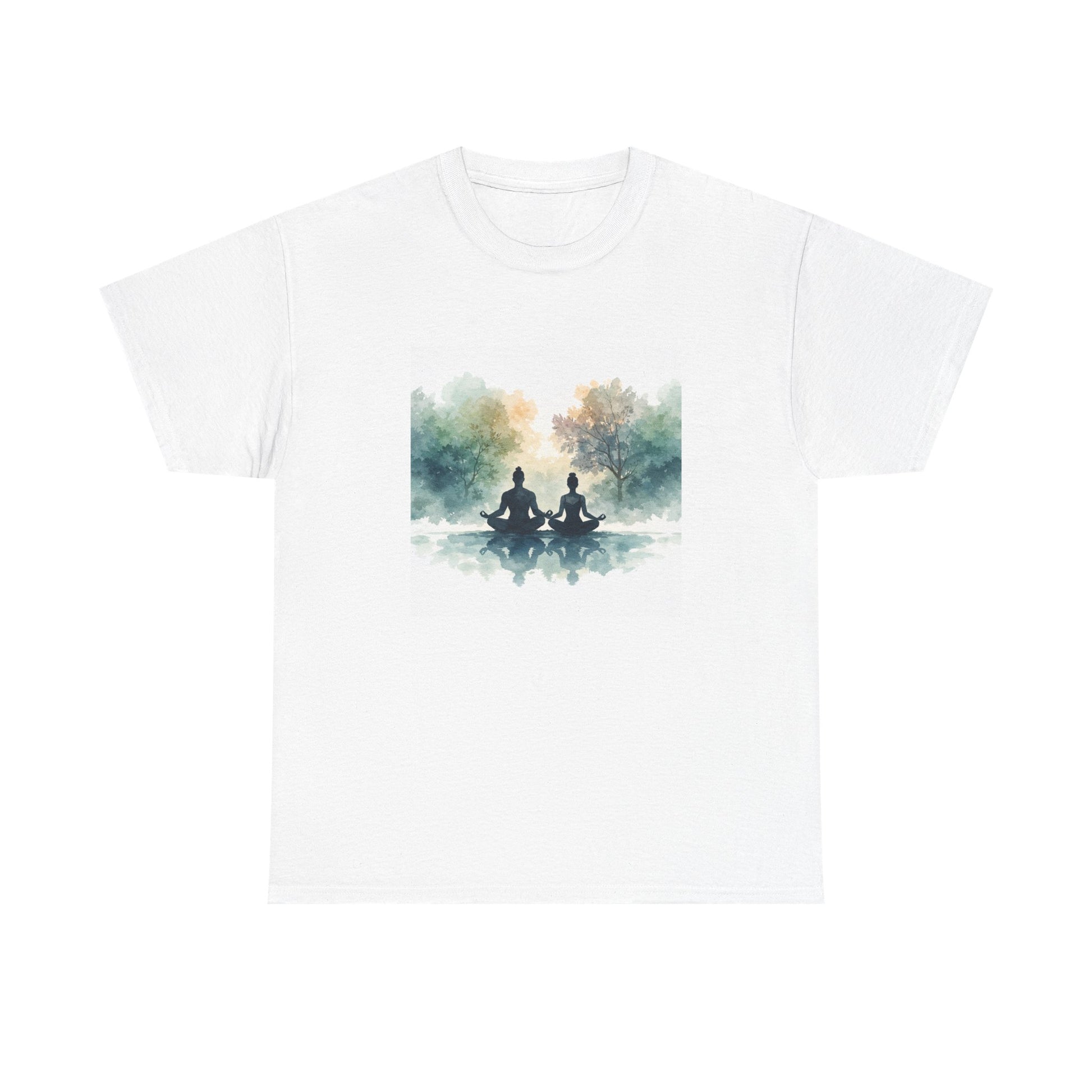 This T-shirt features a serene meditation artwork printed on the front only, capturing a moment of stillness and reflection. The soft watercolor-style composition evokes calm, mindfulness, and emotional balance, making it highly appealing to the US and Canada wellness and lifestyle audience.