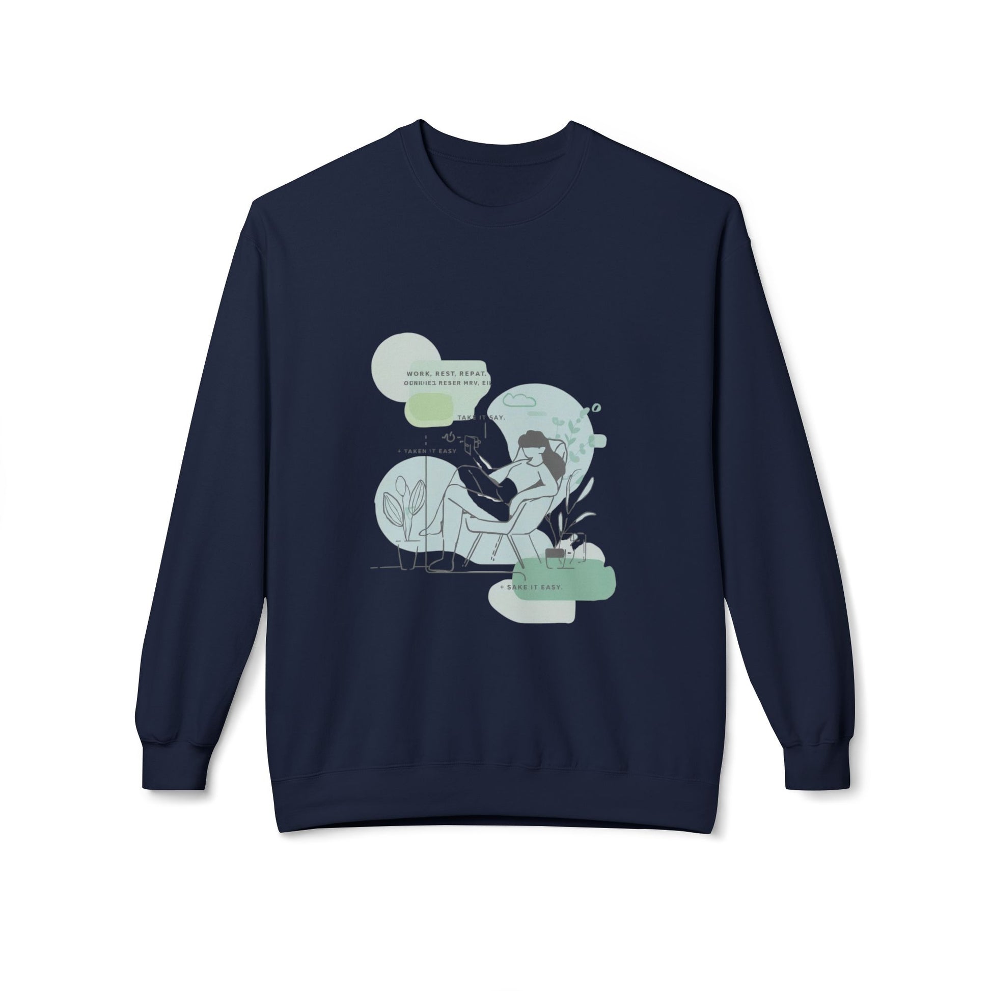 This sweater features the same serene front illustration designed to evoke rest clarity and comfort