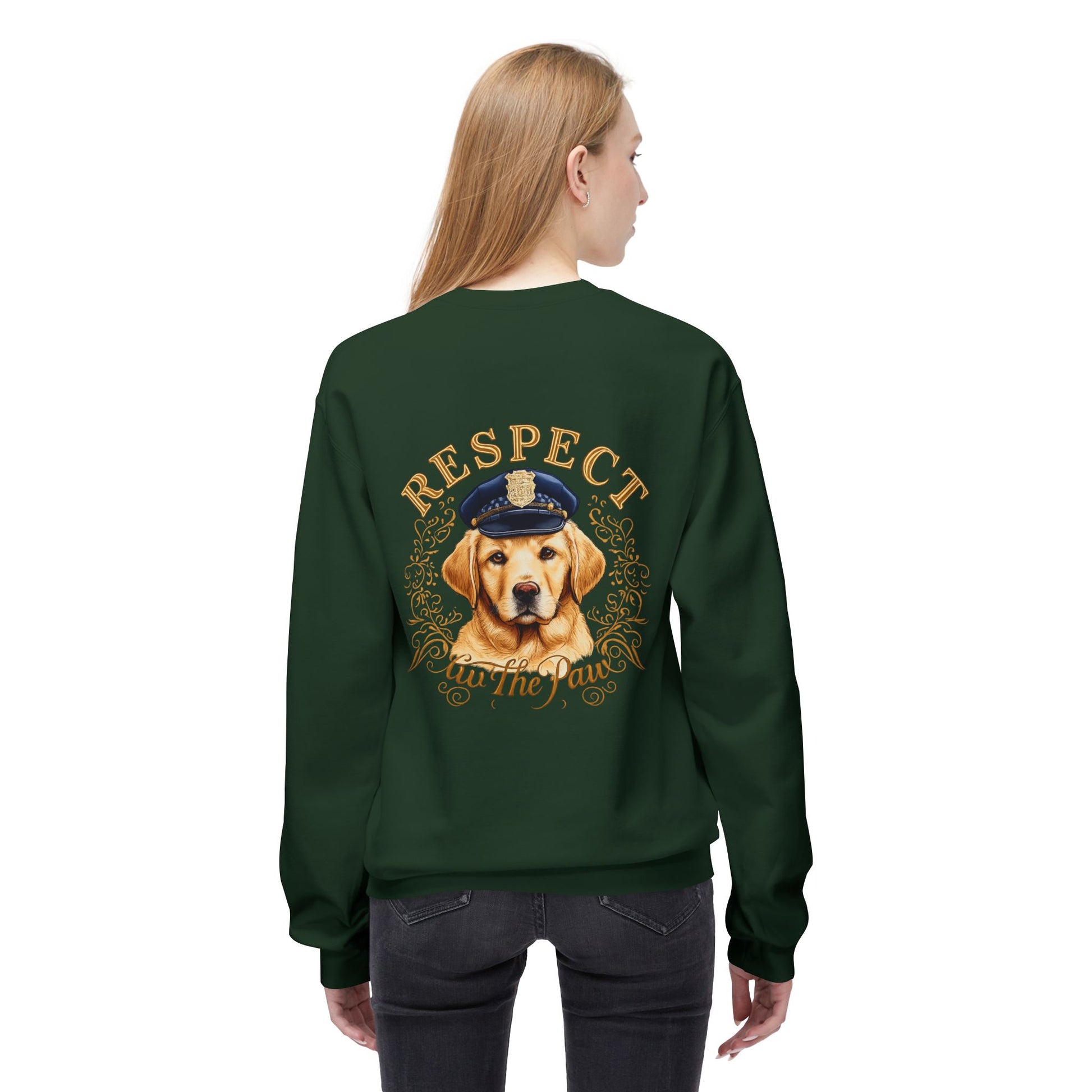 Golden retriever lovers who want a clean front and a bold “RESPECT / Law The Paw” back statement sweatshirt