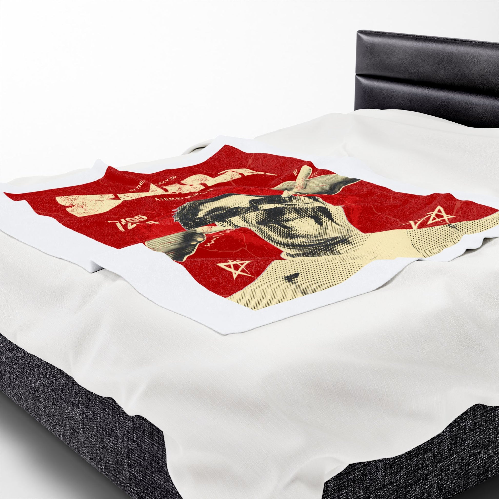 Wrap yourself in retro-satire with this plush velveteen blanket. The bold, poster-style print — distressed reds, vintage halftone artwork, and an exaggerated smiling face — feels like a found prop from an indie film or underground zine. The fabric is sumptuously soft against skin, with enough heft to drape elegantly over a couch or lap. Use it while watching late-night cult movies, styling a bold living room vignette, or as a conversation-starting layer at screenings and themed gatherings. It balances playful irony with tactile comfort; the artwork draws the eye while the plush pile invites slow, cozy moments.