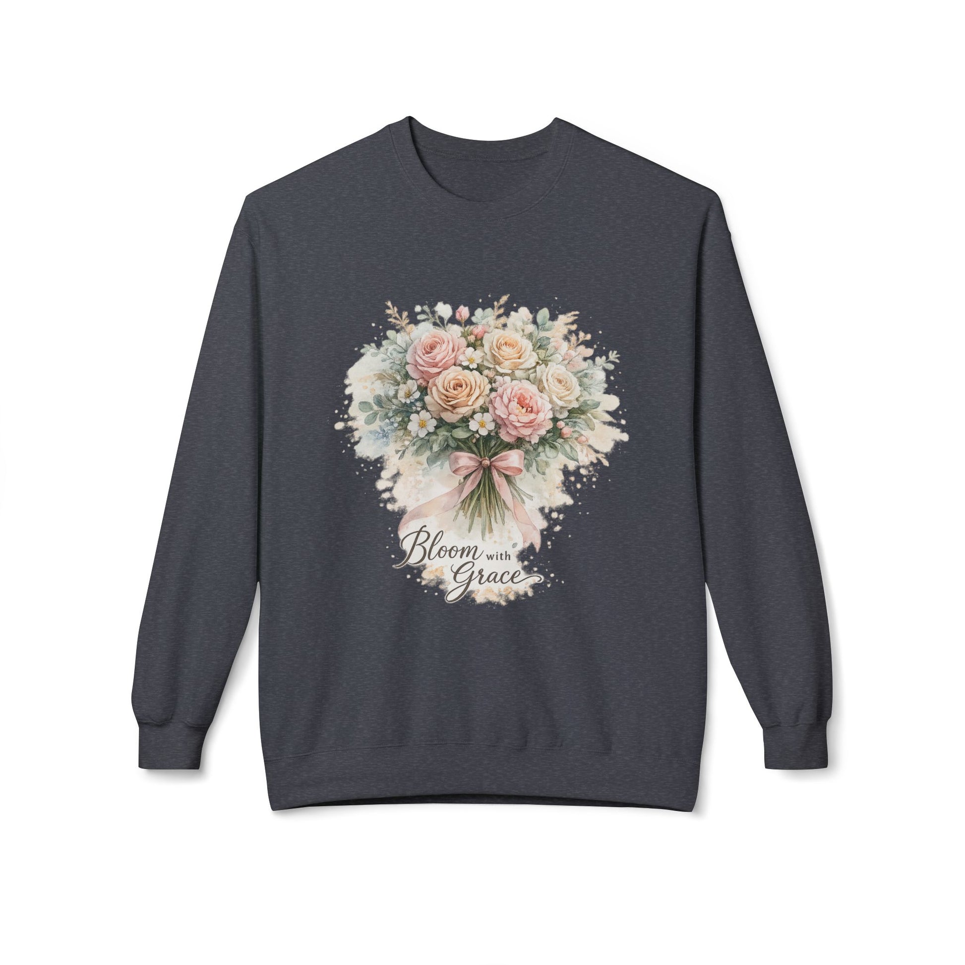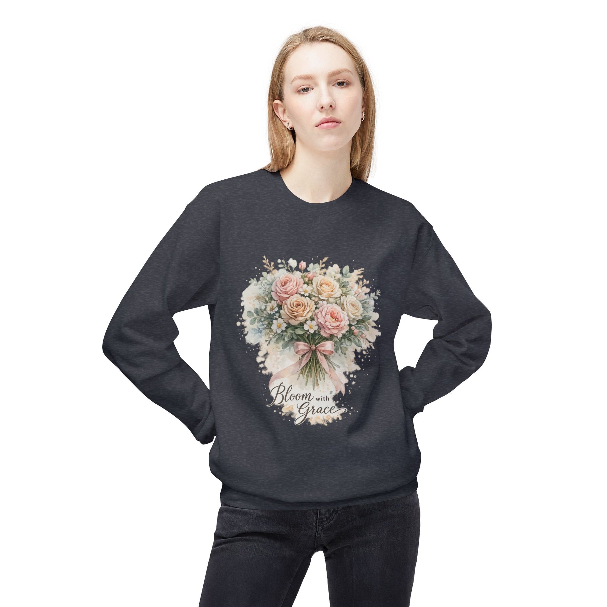 This sweatshirt features the same delicate floral artwork printed on the front only, centered to create a calm and balanced visual statement.