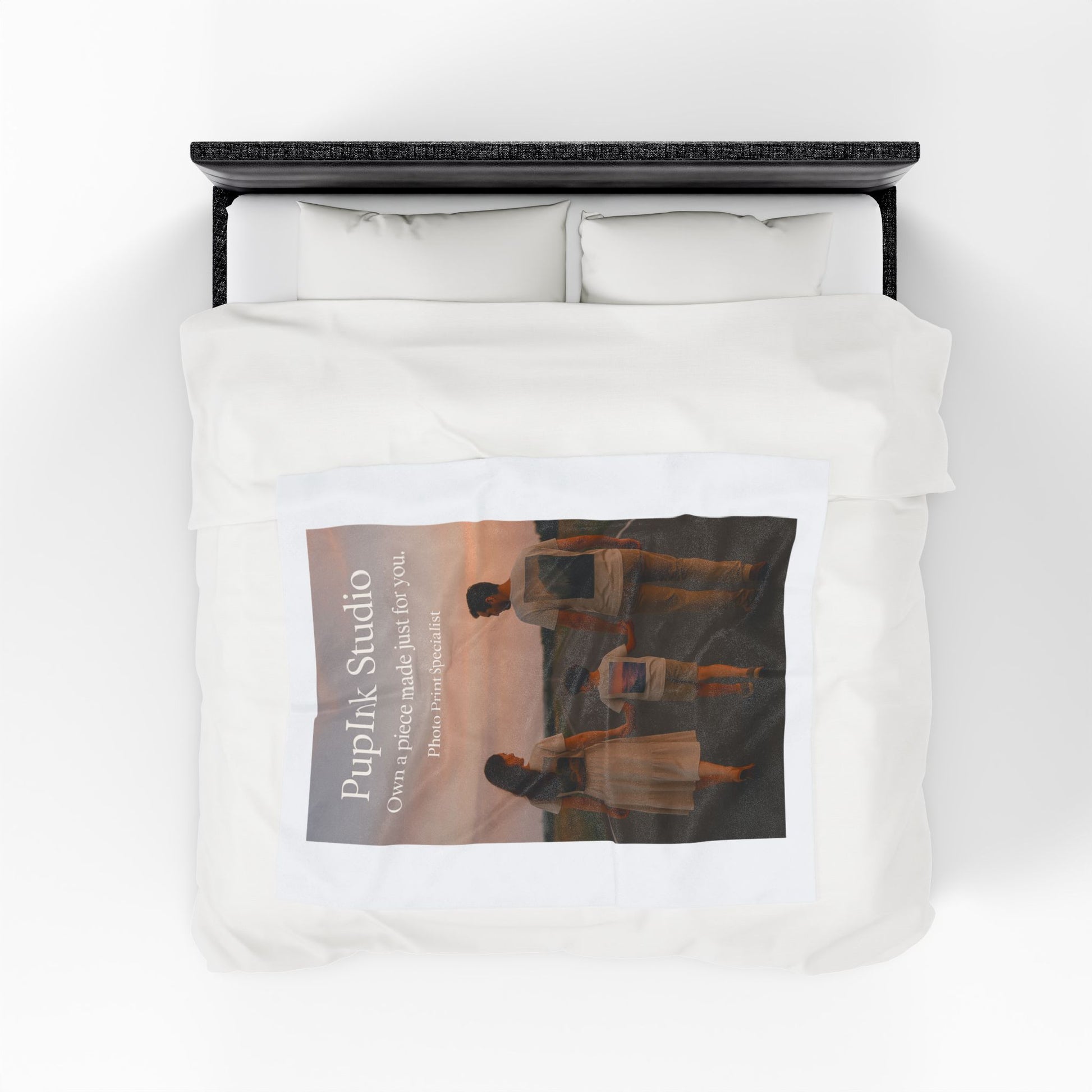 This blanket features a heartfelt family moment printed on the front, evoking warmth, connection, and everyday love.