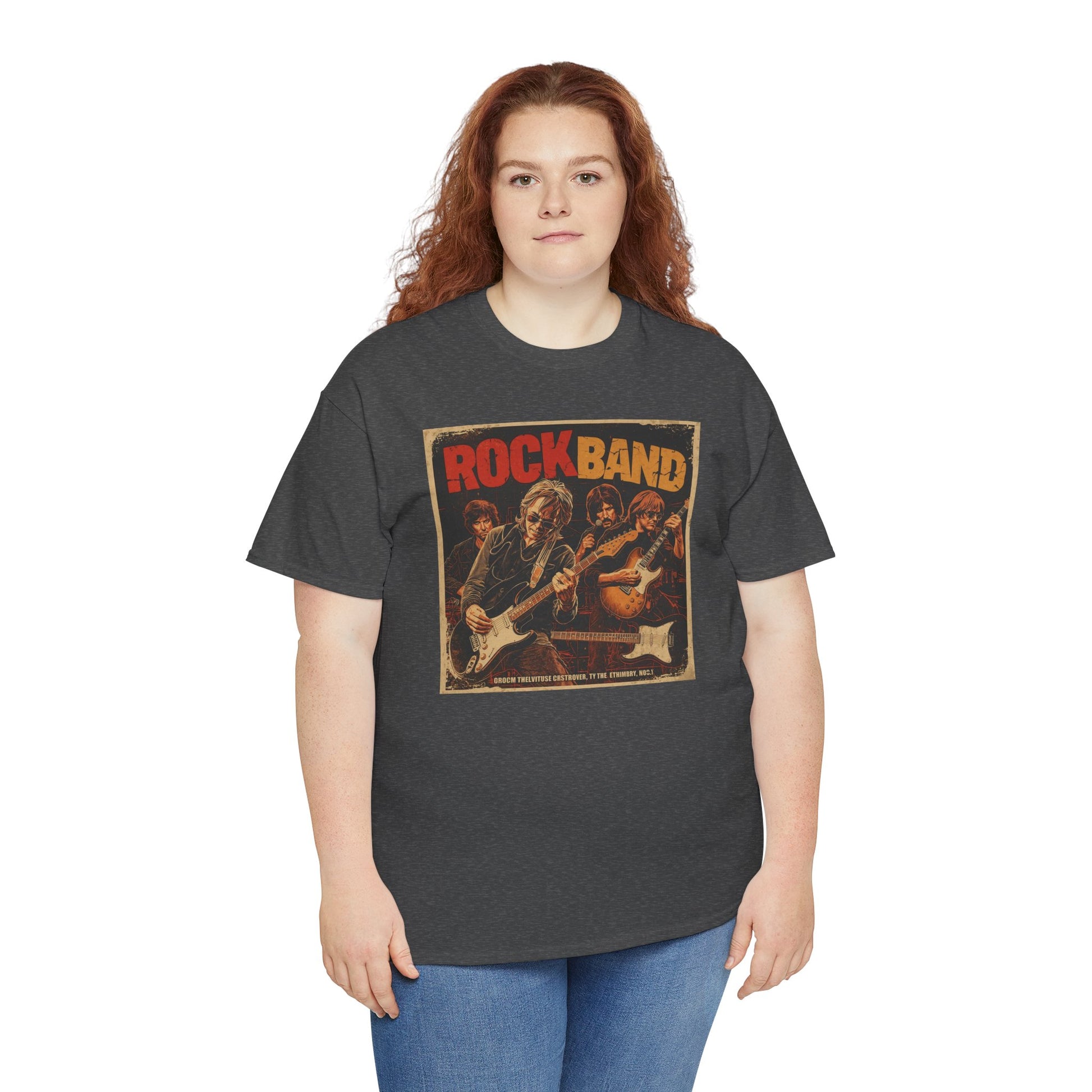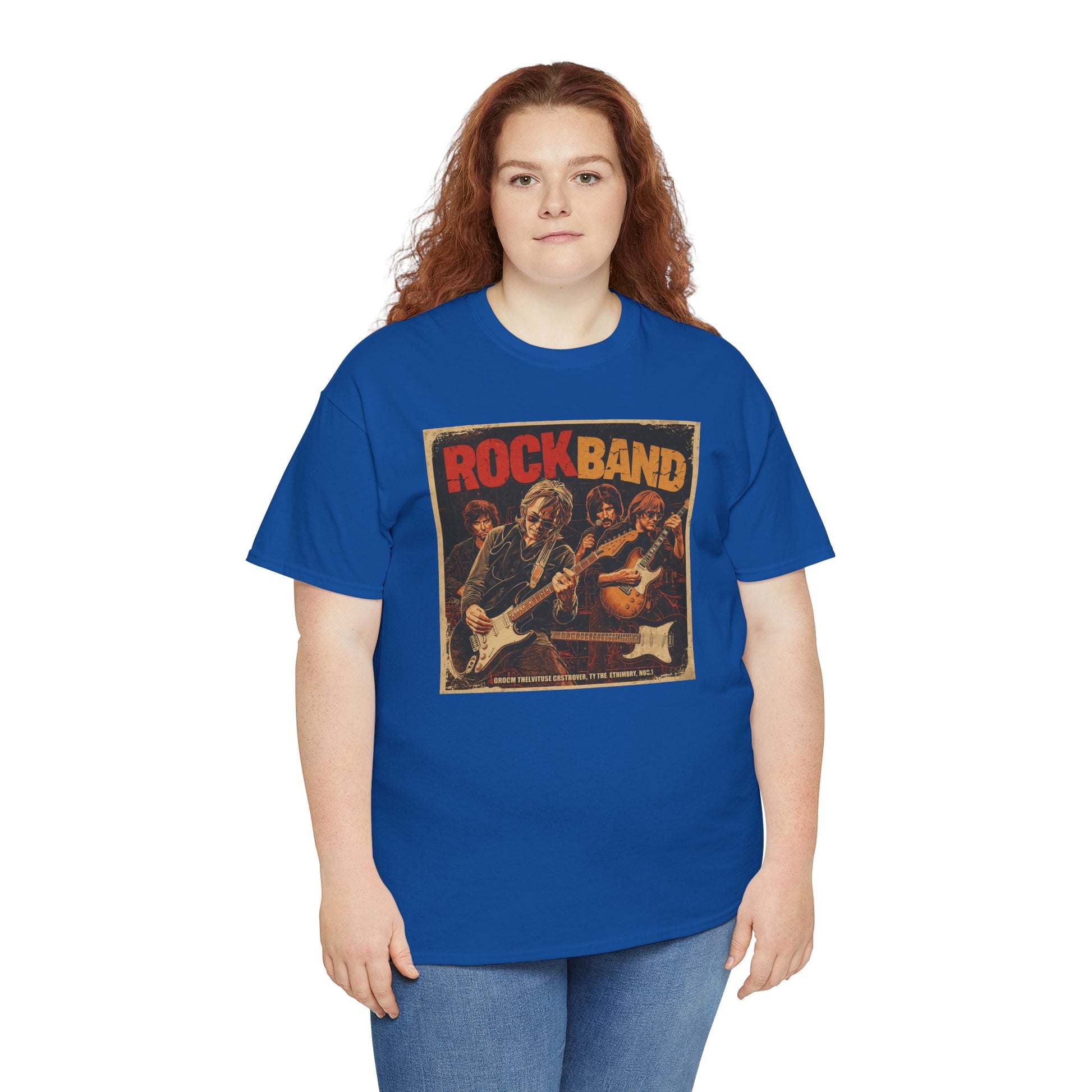 This T-shirt features a vintage-inspired rock band poster illustration with bold colors and a raw, analog feel.