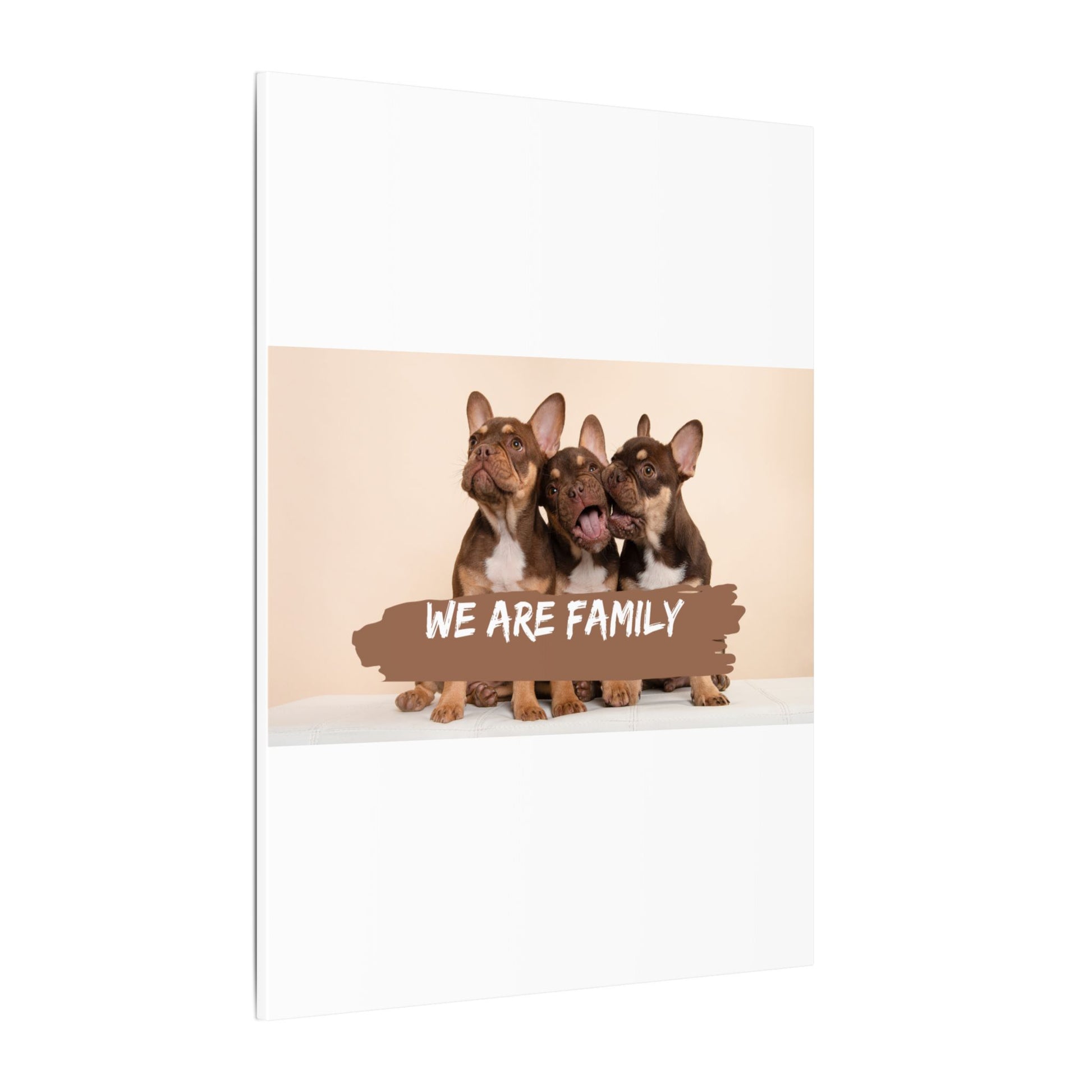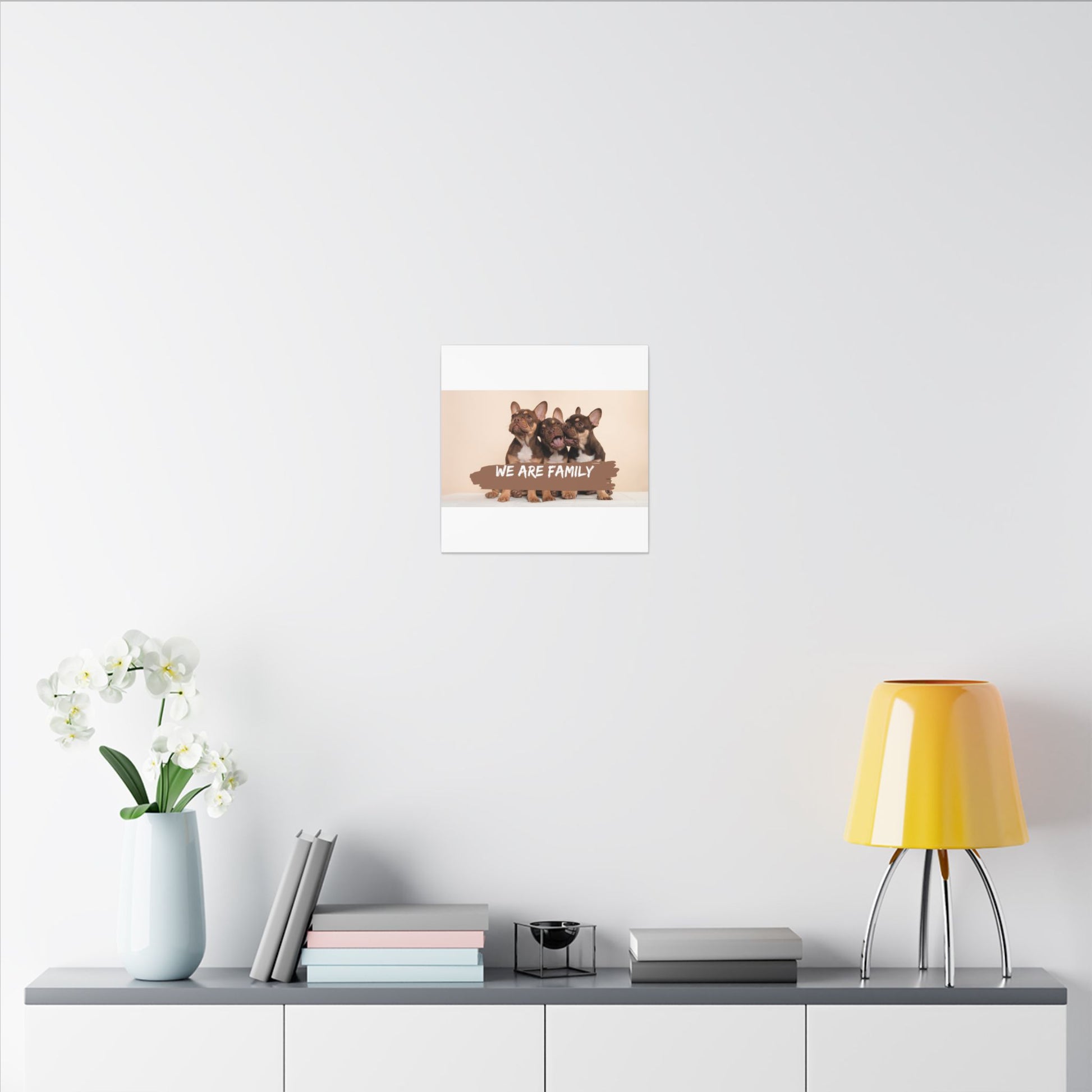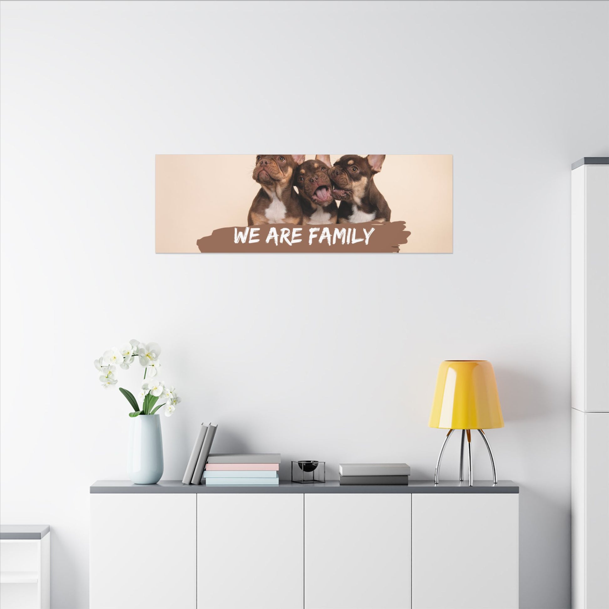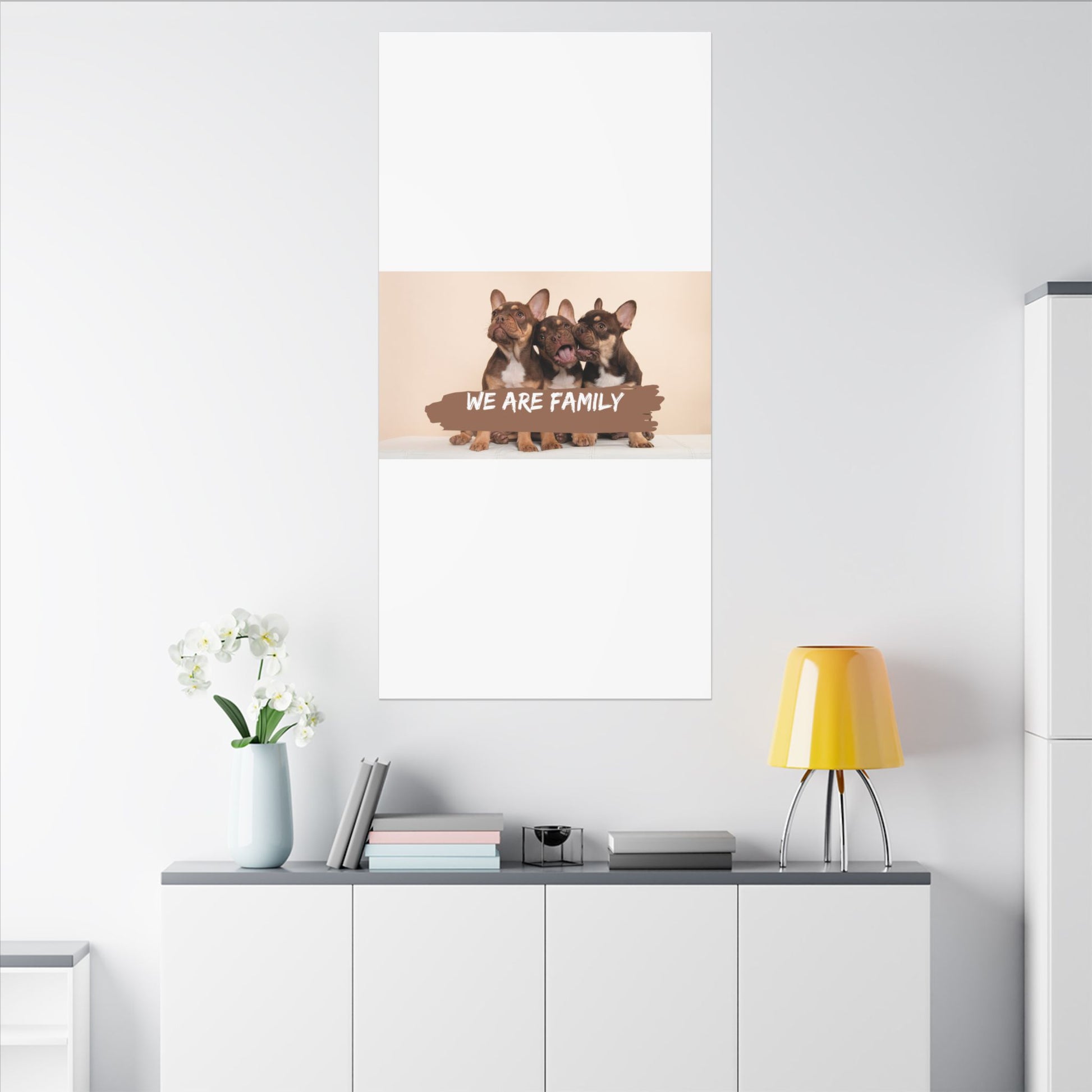 Warm, textured canvas print that brings a cozy, personal touch to a living room, hallway, or nursery. The stretched matte canvas features three playful French Bulldogs captured in a soft, neutral palette with a hand-painted brushstroke reading “WE ARE FAMILY.” Light-reflective, high-resolution printing gives depth to fur and subtle tones while the matte finish keeps glare to a minimum. The slim 0.75" profile sits close to the wall for a modern, gallery-inspired look. Built with responsibly sourced radiata pine stretcher bars and a durable cotton/poly canvas, this piece feels like a quiet, everyday reminder of belonging — a visual nudge toward laughter and home.