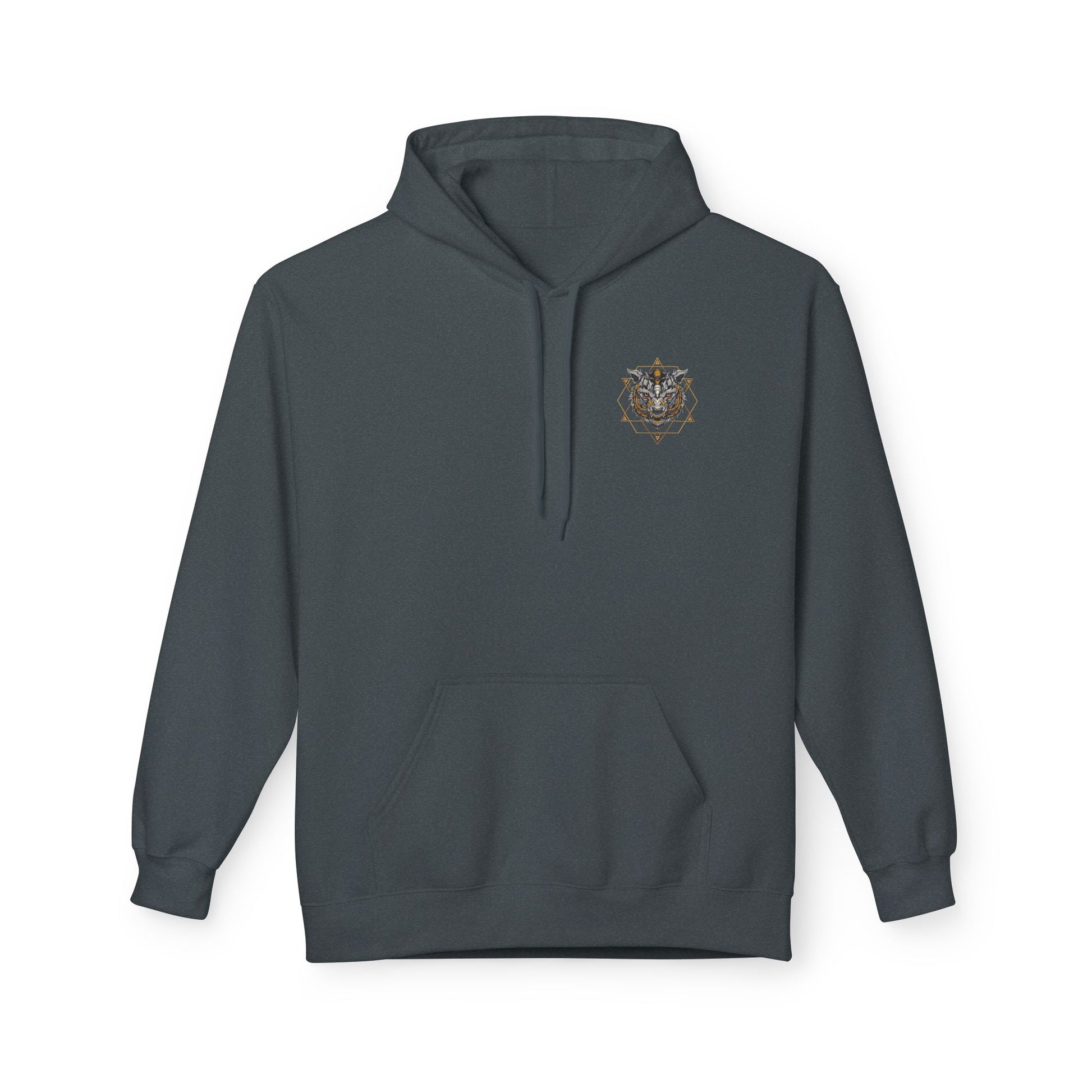 This hoodie features a refined tiger illustration placed on the front chest, framed by a geometric crest that emphasizes balance and authority.